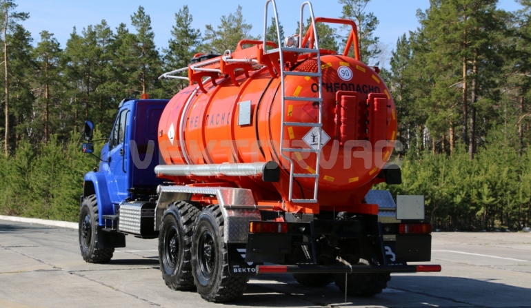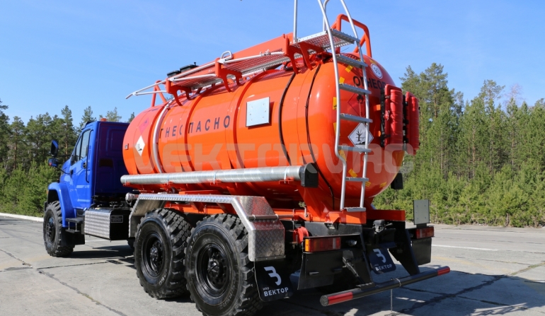 НПО «ВЕКТОР» проектирует и производит автоцистерны под конкретные нужды заказчика: модель АЦМ-10 Урал NEXT предназначена под перевозку метанола.