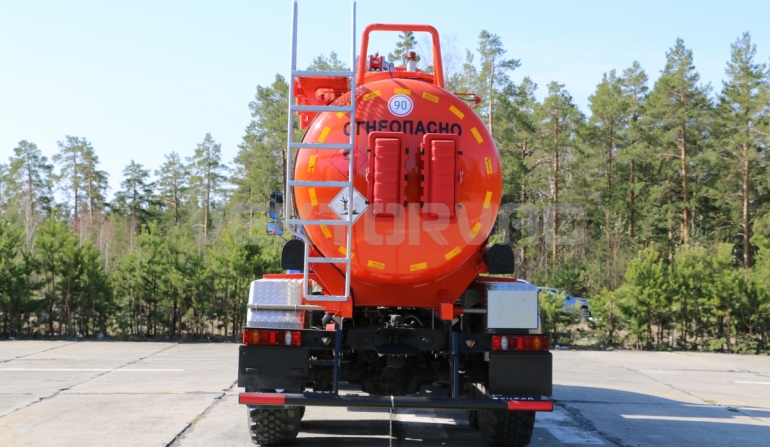 На автоцистерне предусмотрен знак предупреждения «Огнеопасно». Топливные баки зищещены цельнолистовой сталью толщиной 4 мм. Сзади есть цепь походного заземления. 200 мм цепи должно касаться дорожного полотна.