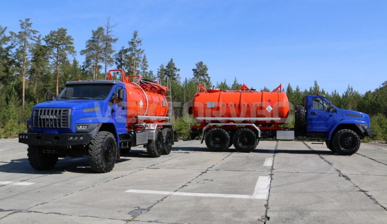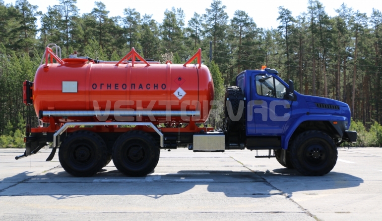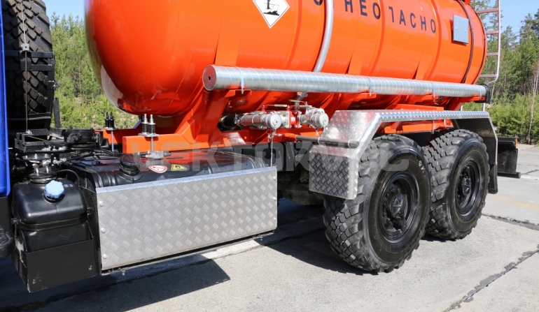 Специальный автомобиль представляет собой цистерну, смонтированную на автошасси «УРАЛ».