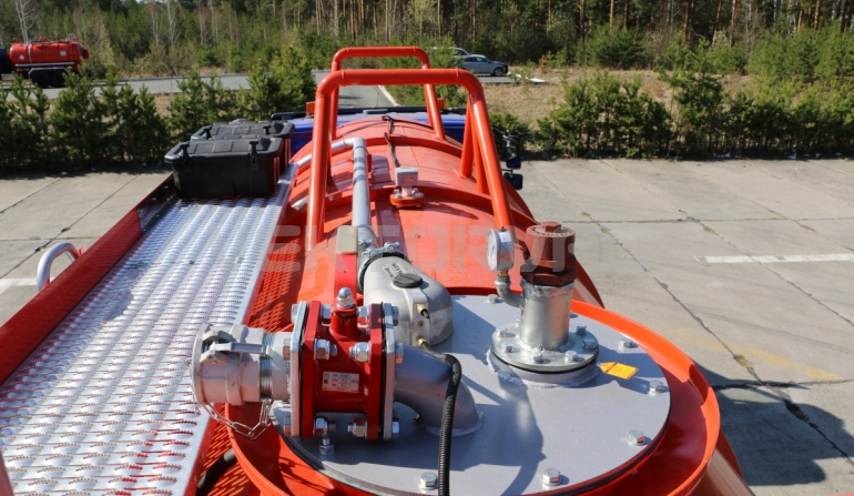 На цистерне предусмотрена площадка для техобслуживания с антискользящей поверхностью в зоне горловины. Для комфортного подъема на площадку предустановлена лестница.