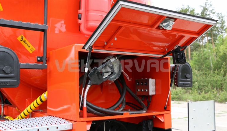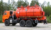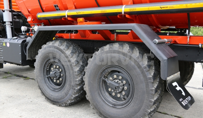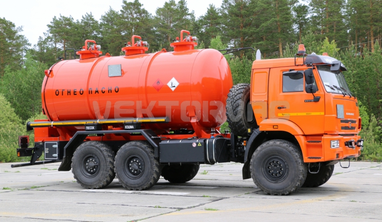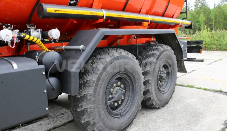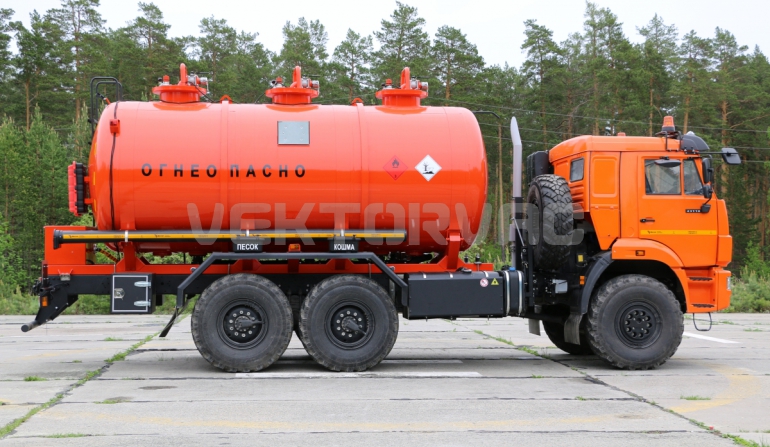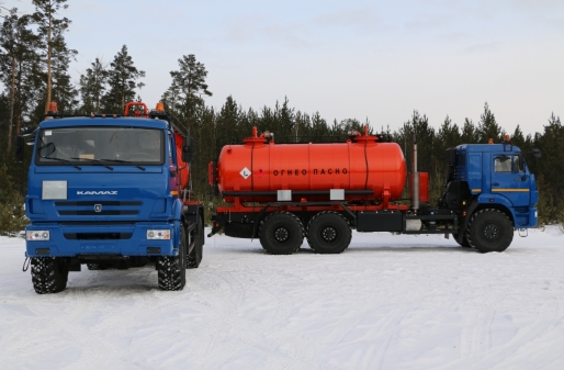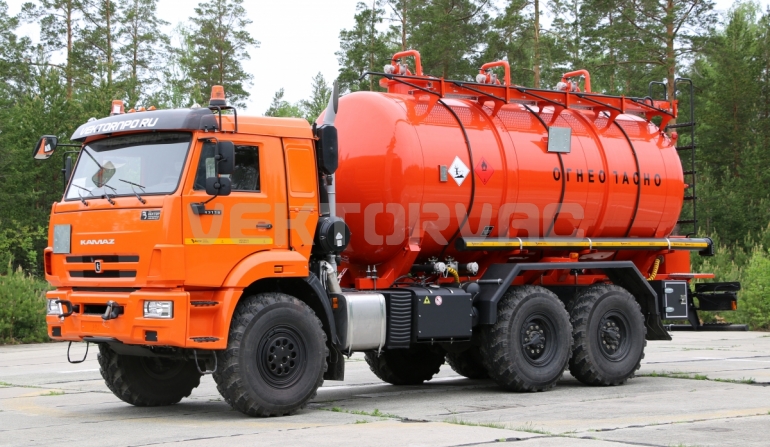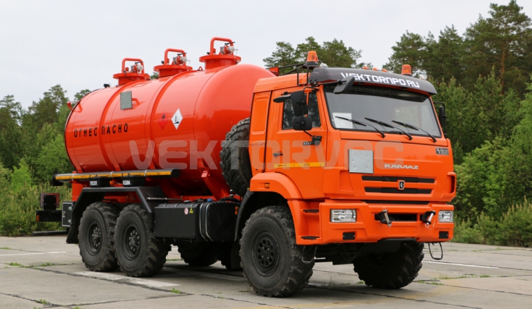Специальный автомобиль представляет собой цистерну, смонтированную на автошасси «КАМАЗ».