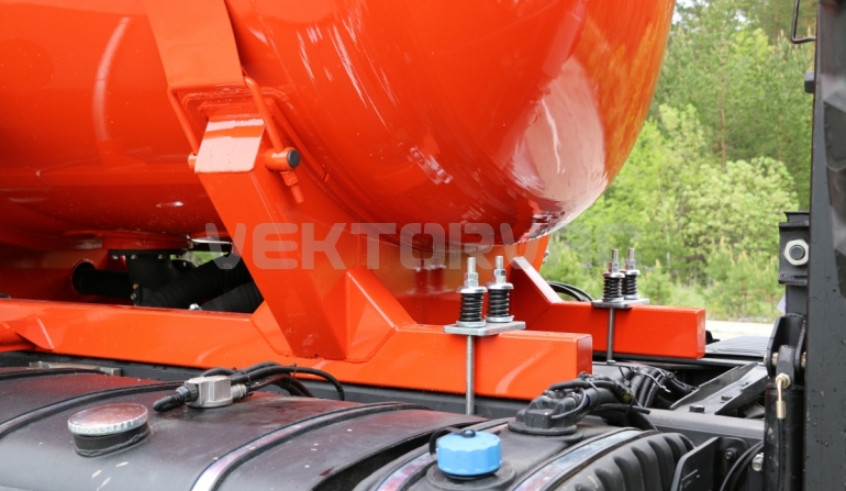 Основание цистерны выполнено из опор на надрамнике и предназначено для крепления к шасси. Опоры присоединяются к металлическим ложементам, которые крепятся к лонжеронам рамы автошасси стремянками. Для сохранения от смятия под опорами в ложементах расположены металлические стойки и ребра. Под опоры цистерны ставятся резиновые амортизаторы.