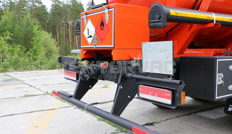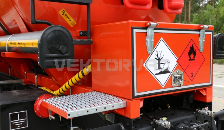На автоцистерне предусмотрен знак предупреждения «Огнеопасно». Топливные баки зищещены цельнолистовой сталью толщиной 4 мм. Сзади есть цепь походного заземления. 200 мм цепи должно касаться дорожного полотна.