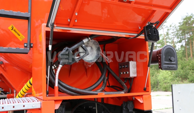 В цистерне имеется заливная труба. Сверху цистерны вварена горловина с люком-лазом (⌀ 500 мм), снизу — отстойник и фланец для присоединения к насосному узлу. Во избежание появления воздушных полостей при заполнении цистерны, установлены воздухоотводы — трубки, с концами выведенными в горловину. Узел выдачи метанола в интегрированном технологическом шкафу расположен в заднем отсеке.