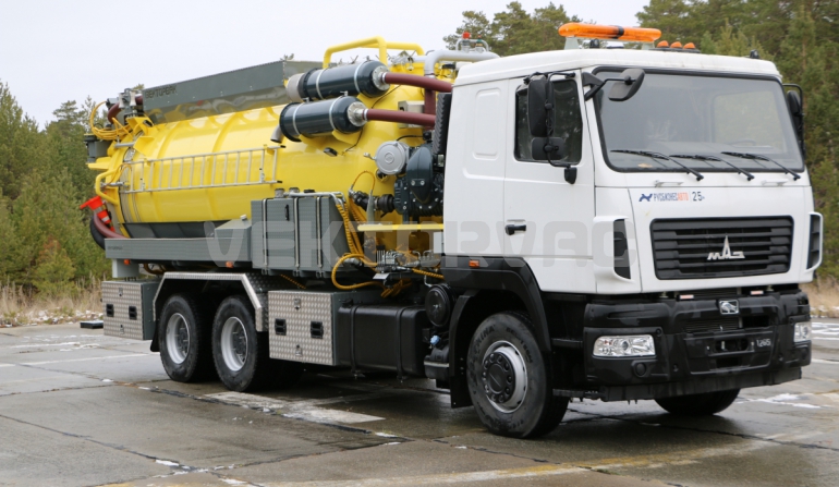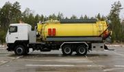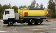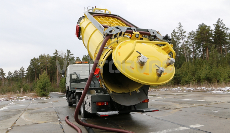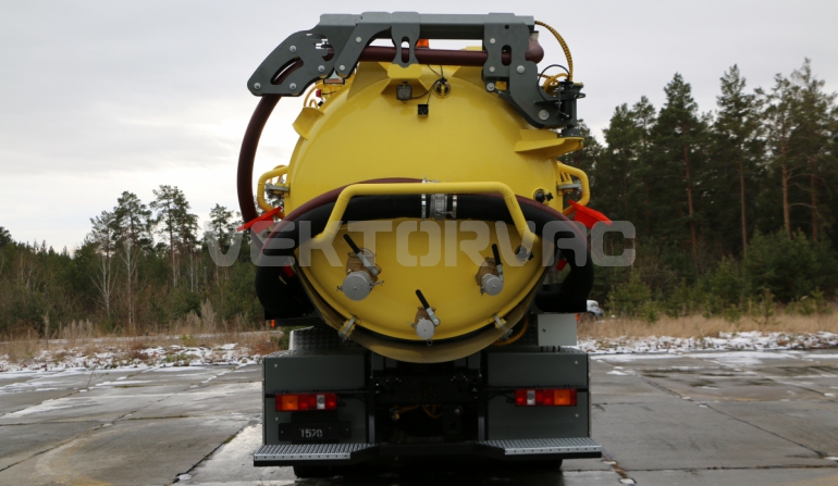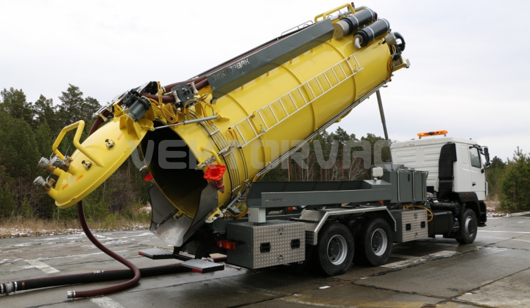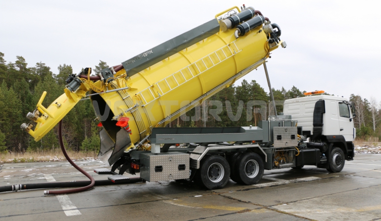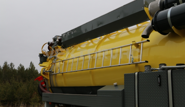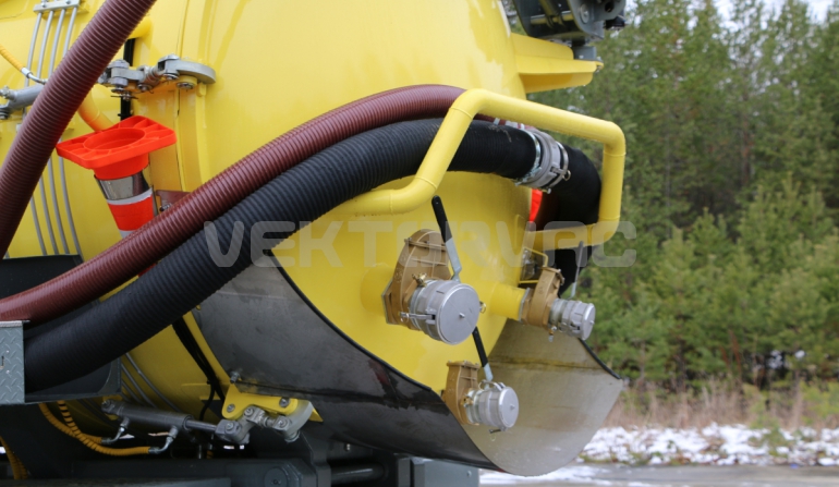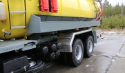| Размывочные форсунки внутри цистерны в передней нижней части (3 шт.) с подачей воды от системы гидроразмыва. Подача воды на форсунки возможна, в том числе, при поднятой цистерне. Внешняя часть магистрали подвода воды на форсунки имеет утепление «Пенофолом» 10 мм и подогрев от греющей ленты 24V |