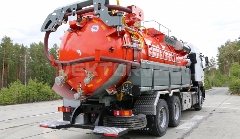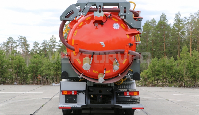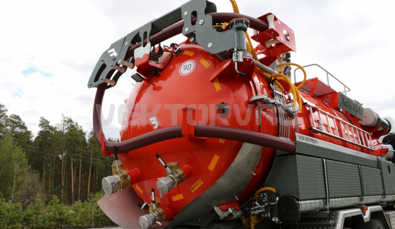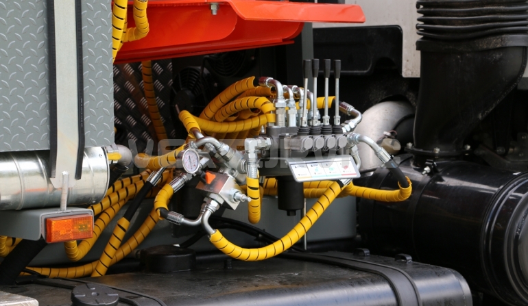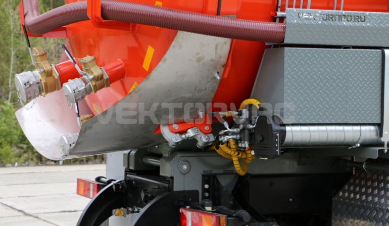| Размывочные форсунки внутри цистерны в передней нижней части (3 шт.) с подачей воды от системы гидроразмыва. Подача воды на форсунки возможна, в том числе, при поднятой цистерне. Внешняя часть магистрали подвода воды на форсунки имеет утепление «Пенофолом» 10 мм и подогрев от греющей ленты 24V |