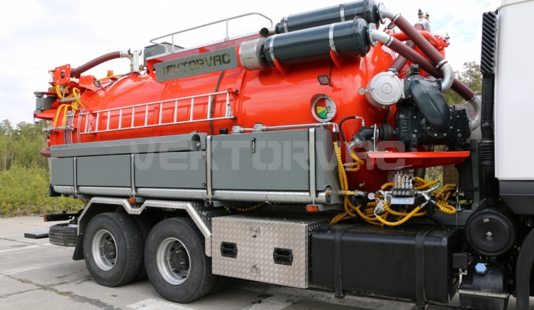 Исполнение привода позволяет проводить одновременную работу по гидроразмыву и сбору отходов в номинальных показателях без потери мощности. |