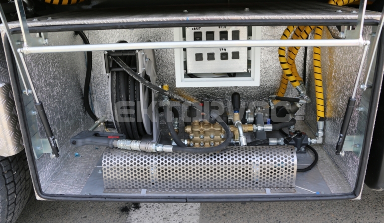 | Всё оборудование гидроразмыва помещено в отдельном технологическом отсеке, изготовленном из алюминия. Сам отсек имеет утепление с внутренней стороны материалом «Пенофор», 10 мм. Подогрев отсека от ТЭН 24V |