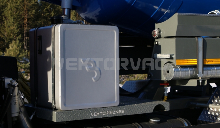 Автоцистерна оборудована напорно-всасывающим рукавом, который в транспортном положении находится в пенале.