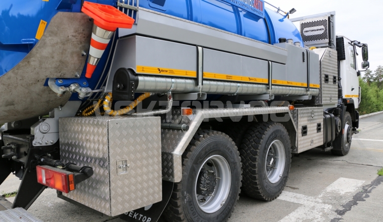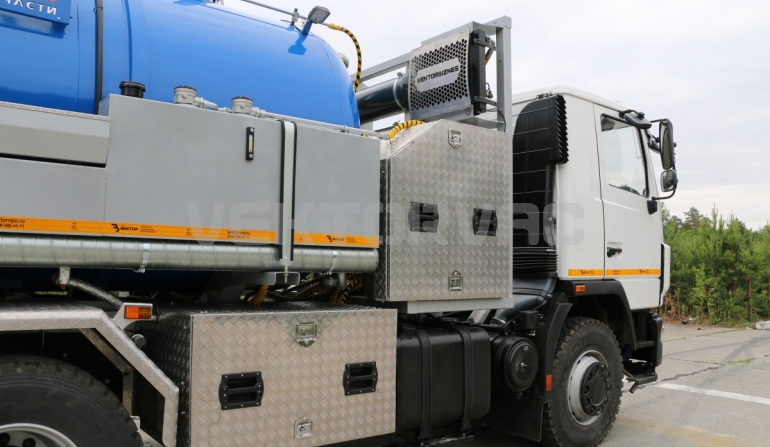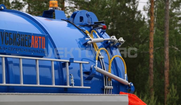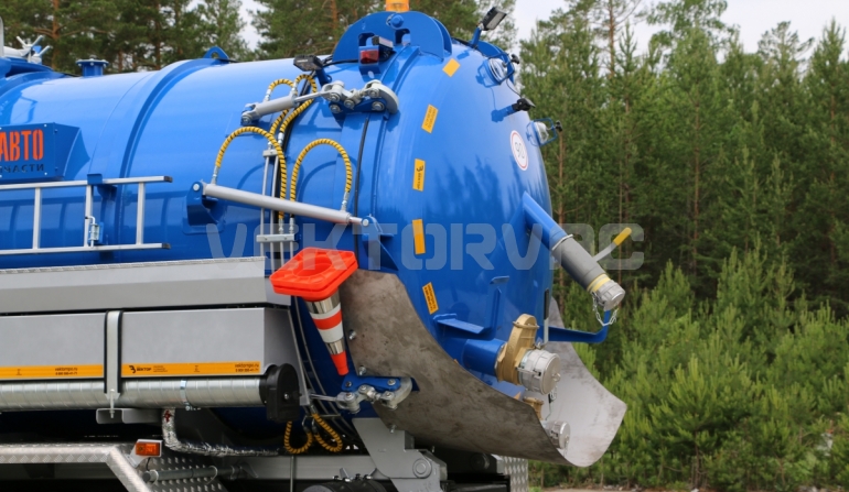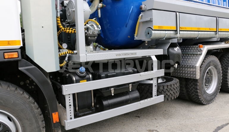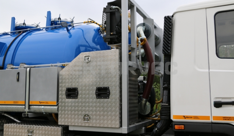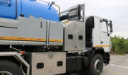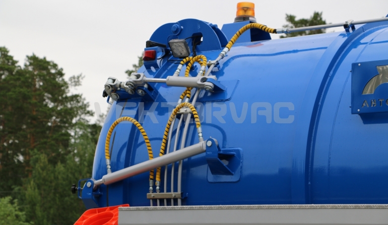Автоцистерна оборудована напорно-всасывающим рукавом, который в транспортном положении находится в пенале.