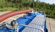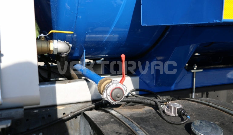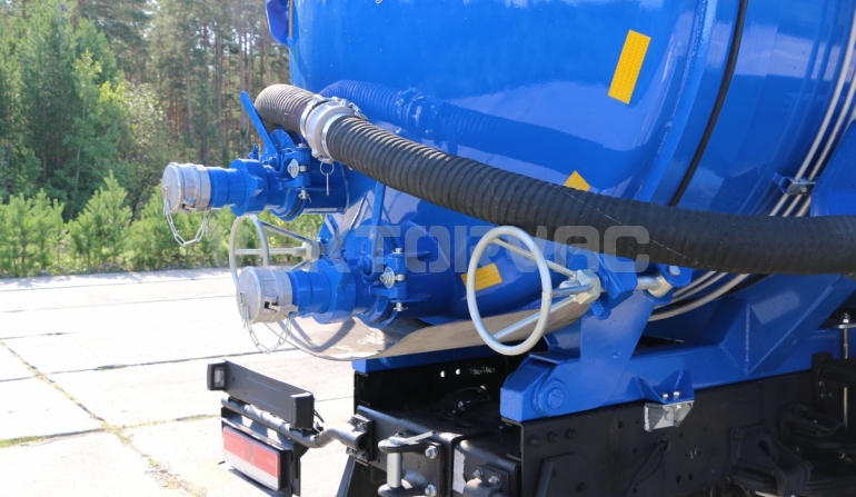 Автоцистерна оборудована напорно-всасывающим рукавом, который в транспортном положении находится в пенале.