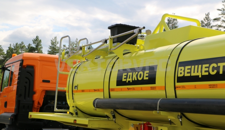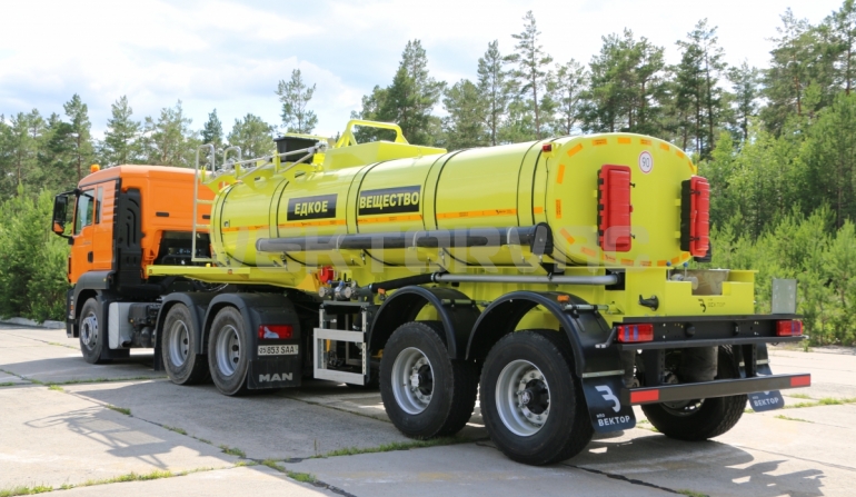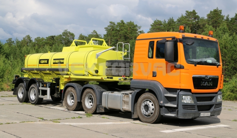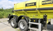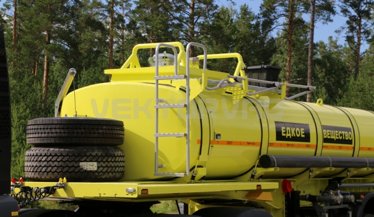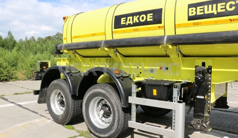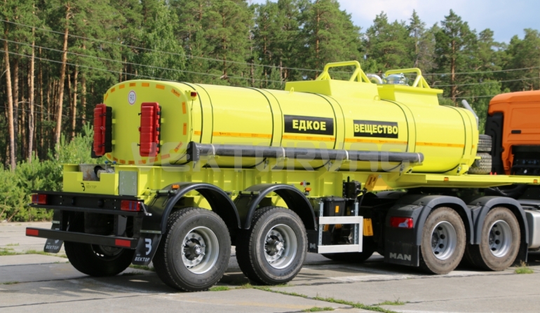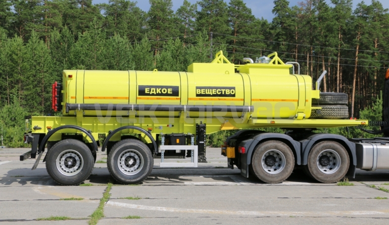 Полуприцеп-цистерна кислотовоз имеет рамную конструкцию – емкость изготовлена из низкоуглеродистой стали укладывается в ложементы рамы полуприцепа, рама устанавливается на тележку. Фиксация цистерны на ложементах при помощи стяжных лент. Стальная рама полуприцепа-цистерны из сварного профиля имеет большой запас прочности, дополнительную жесткость конструкции предают вваренные усилители.