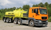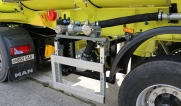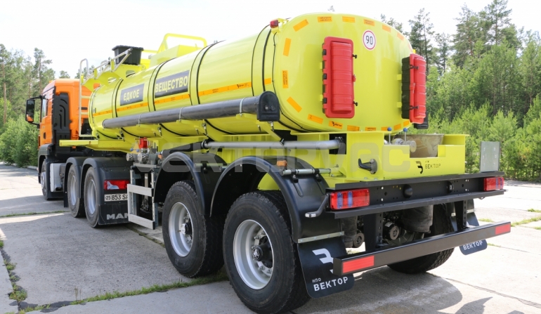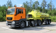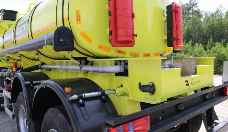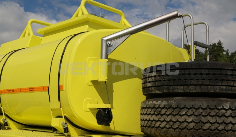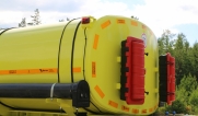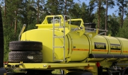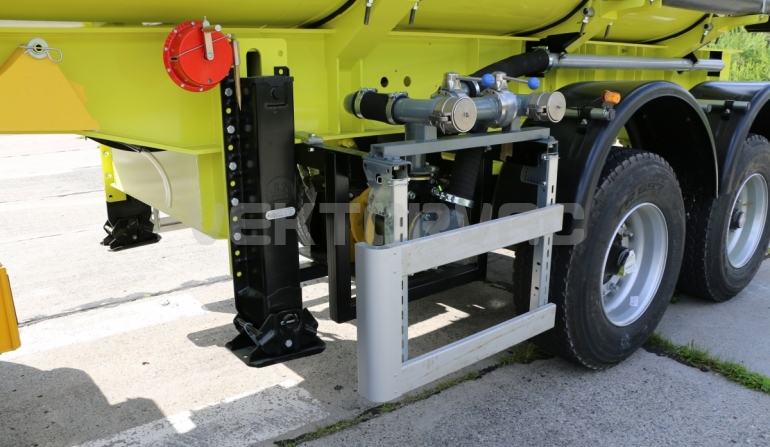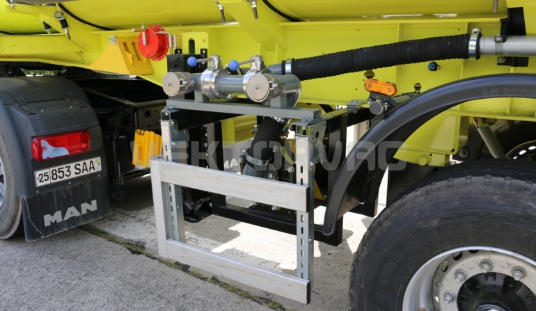 Удобная площадка обслуживания со складными алюминиевыми перилами и настилом из просечного листа, препятствующего скольжению, закреплена на раме полуприцепа, что позволяет избежать дополнительной нагрузки на емкость и сохранить целостность обечайки.
