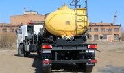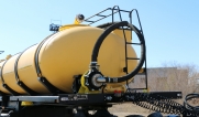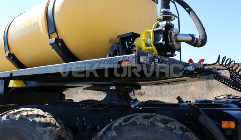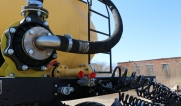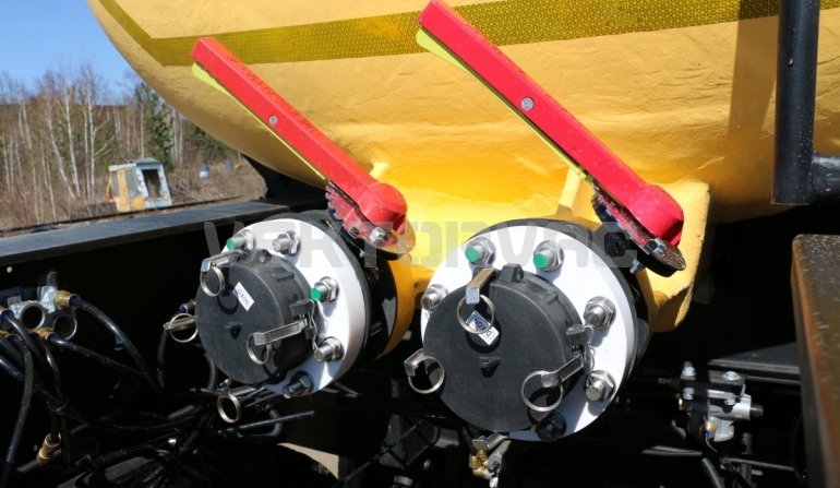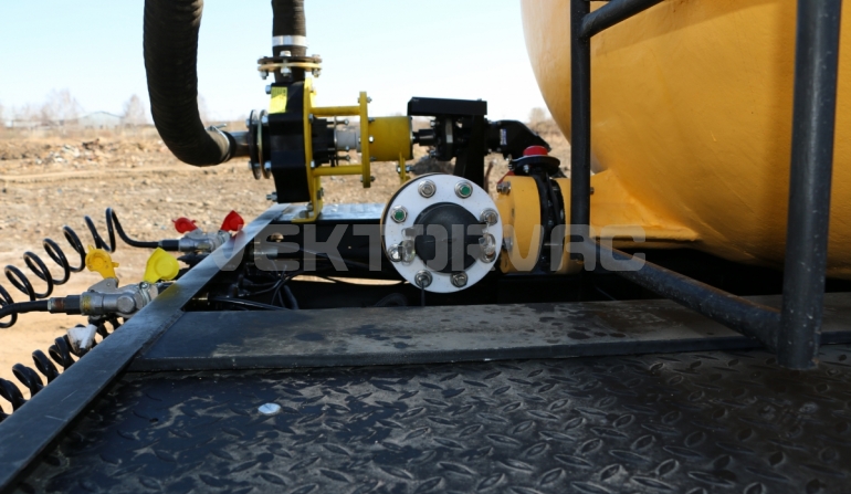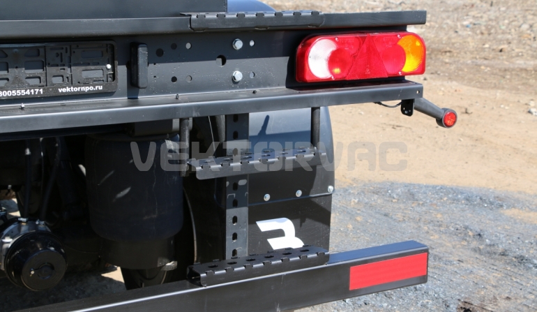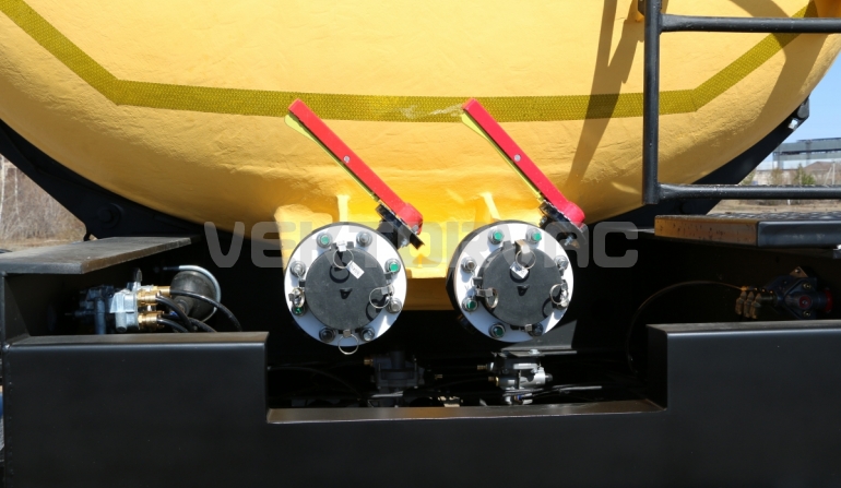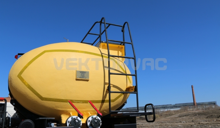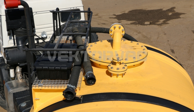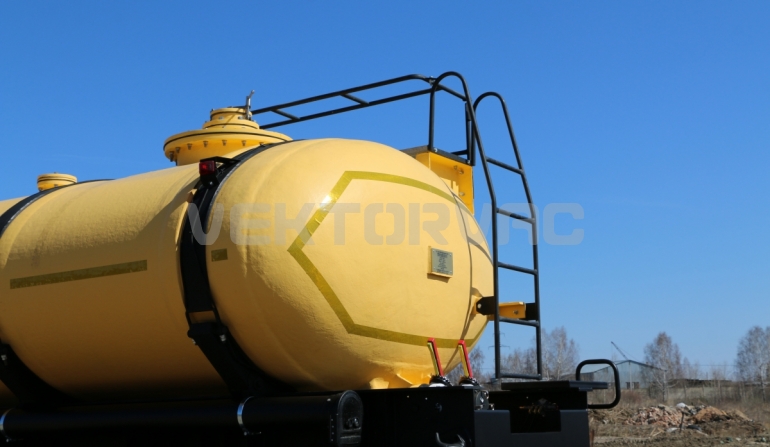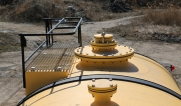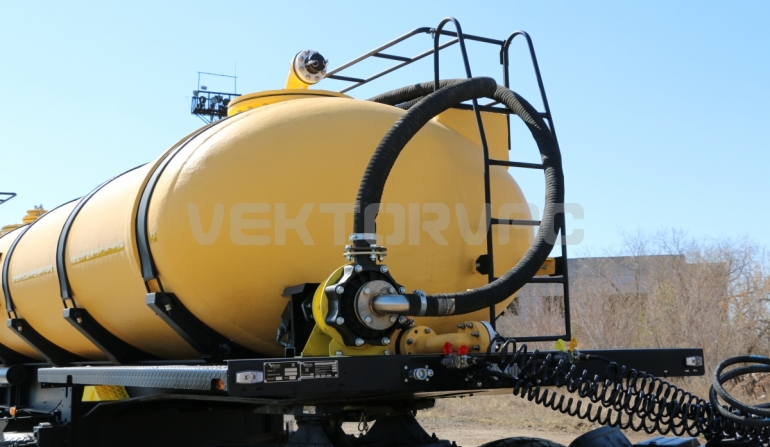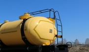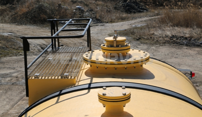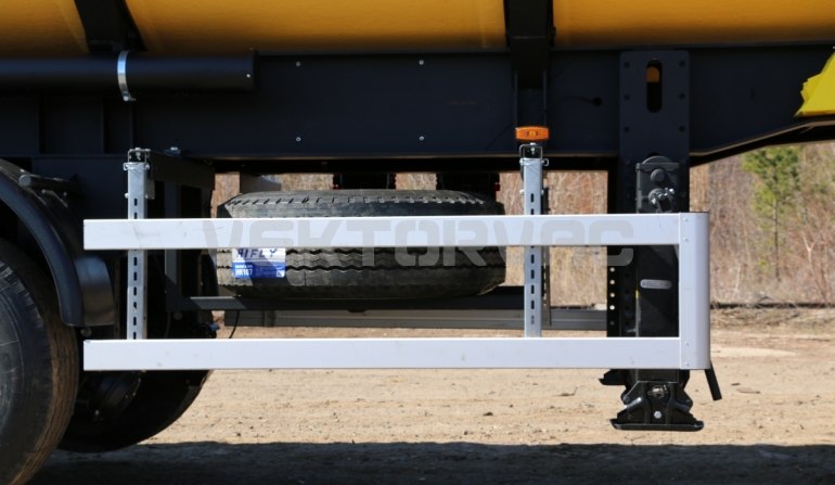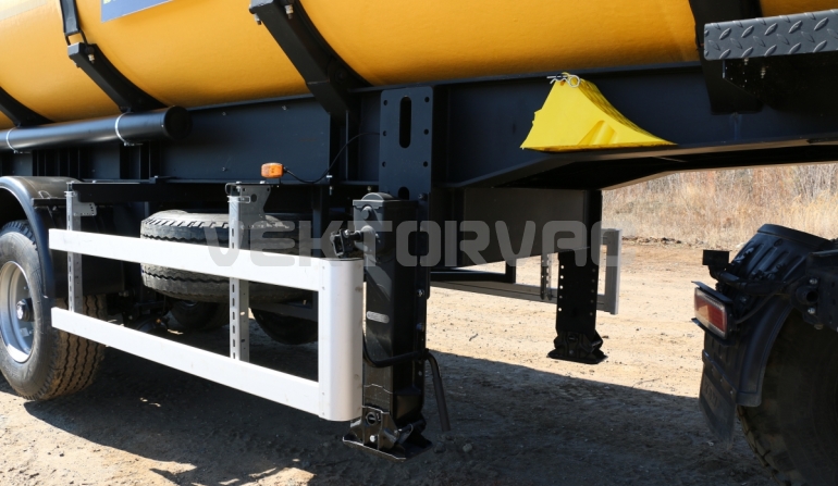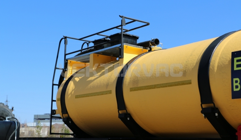 Удобная площадка обслуживания со складными алюминиевыми перилами и настилом из просечного листа препятствующего скольжению, закреплена на раме полуприцепа, что позволяет избежать дополнительной нагрузки на емкость и сохранить целостность обечайки.