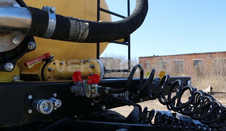 Стальная рама полуприцепа-цистерны из сварного профиля имеет большой запас прочности, дополнительную жесткость конструкции придают вваренные усилители.