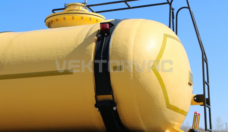 Фиксация цистерны на ложементах при помощи стяжных лент обеспечивает небольшую свободу емкости при скручивании рамы, что дополнительно снижет нагрузку на саму емкость. Такая конструкция имеет большую прочность и надежность за счет того, что большая часть динамических нагрузок при движении приходится на раму.