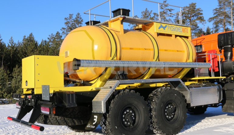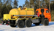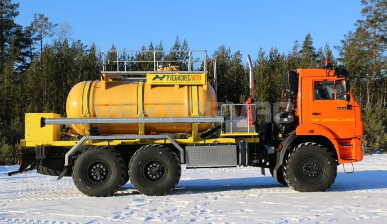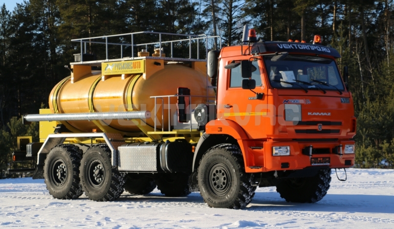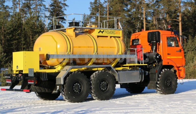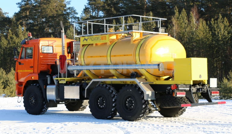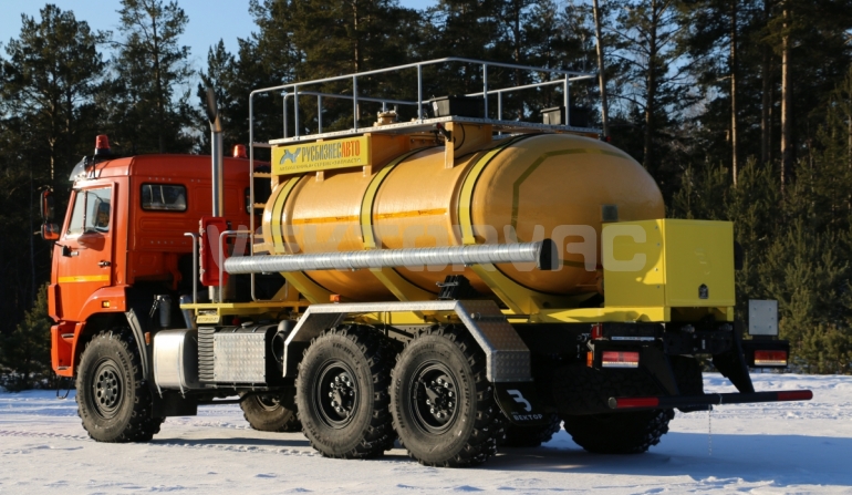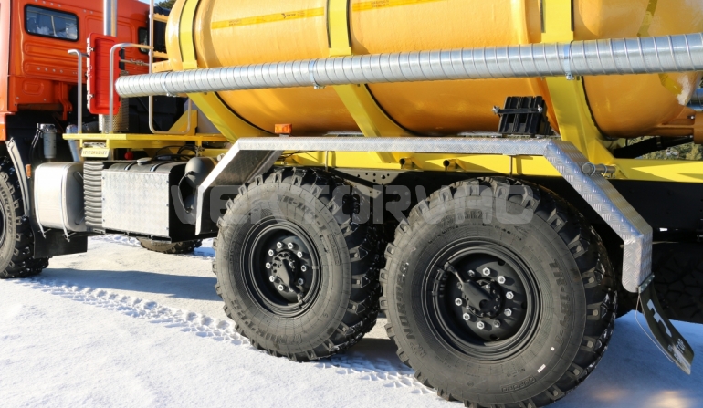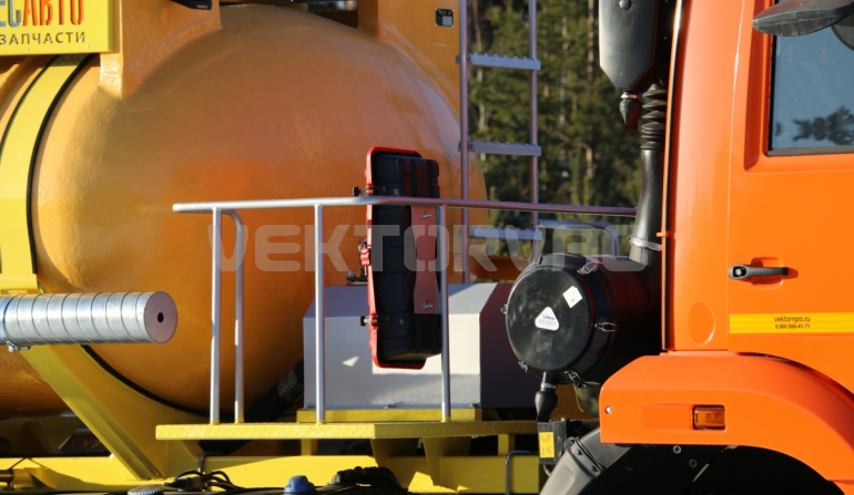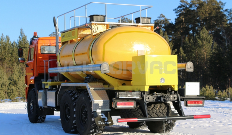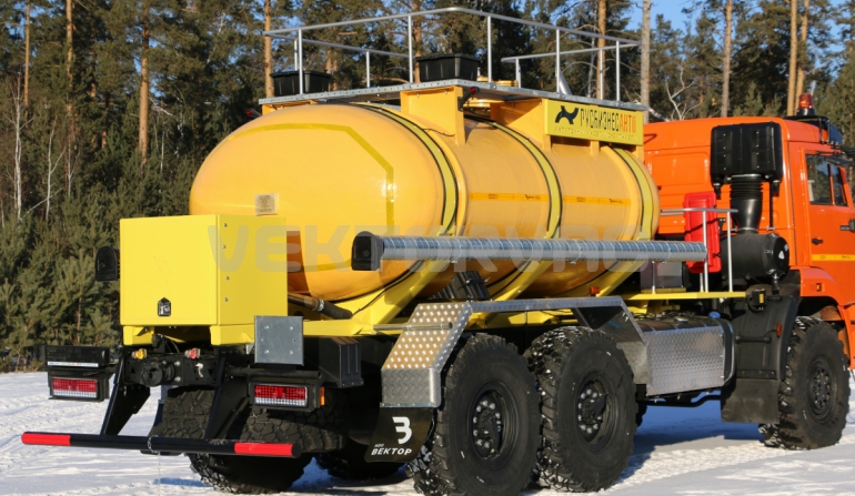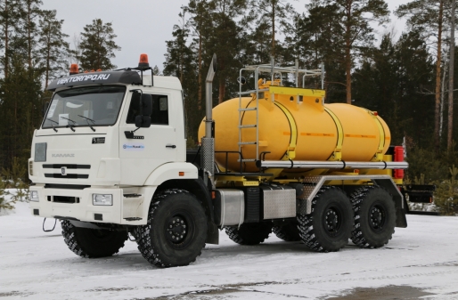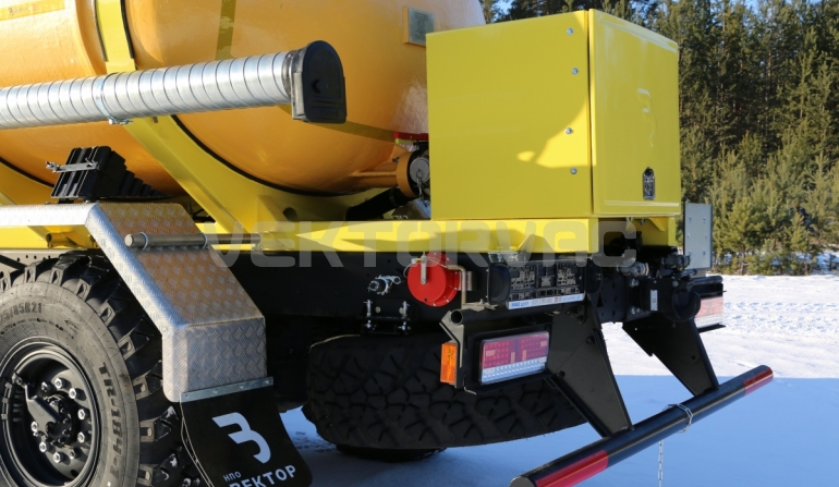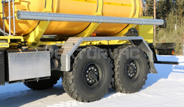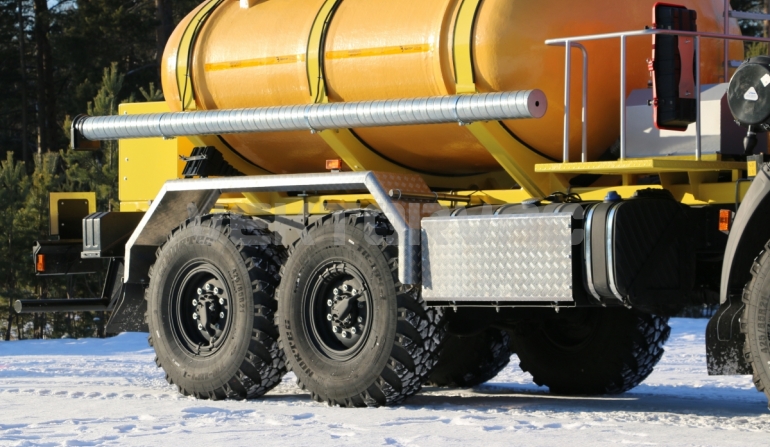 Цистерна установлена на шасси КАМАЗ-43118. Шасси оснащено гидрофикацией для подключения насоса.