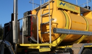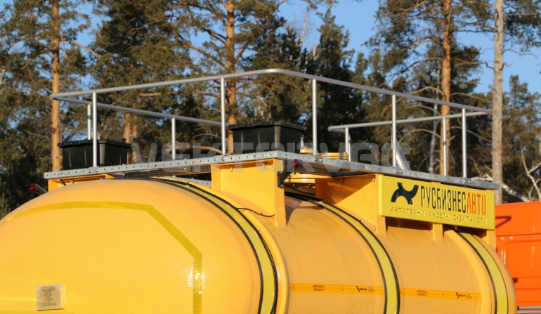 Автоцистерна тарированная, покрытие «гелькоут» жёлтого цвета с надписью по бокам «Едкое вещество». Присутствует предупредительная маркировка на кузове, бампере и емкости.