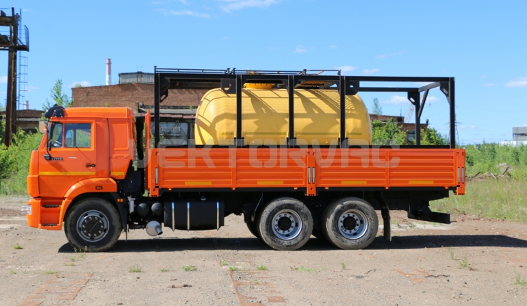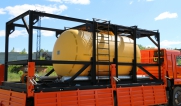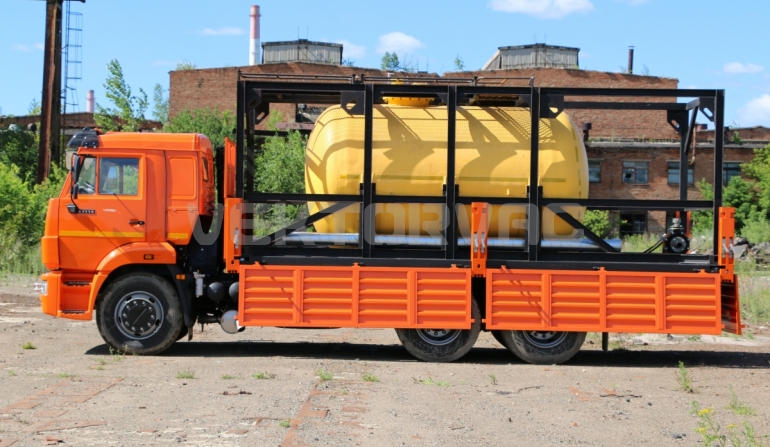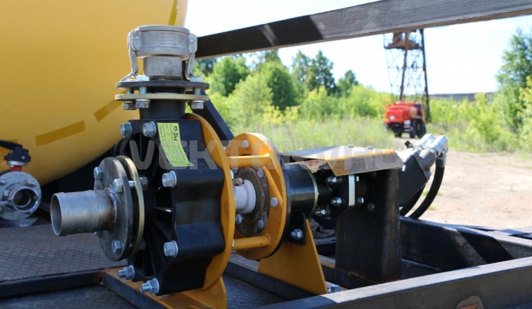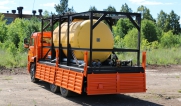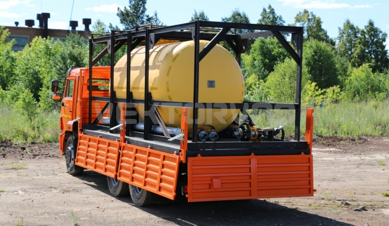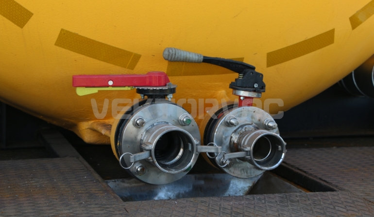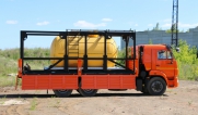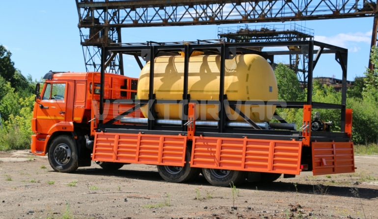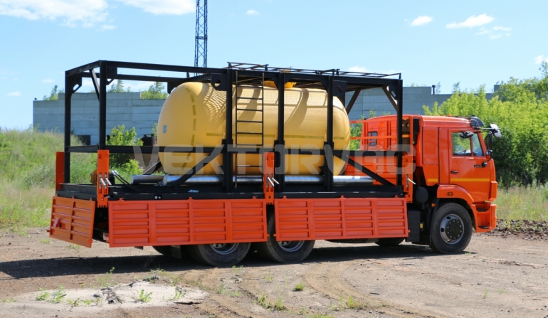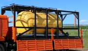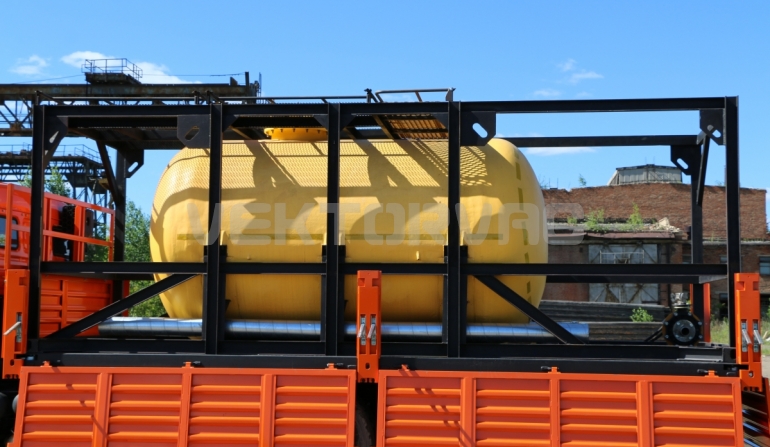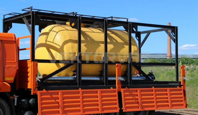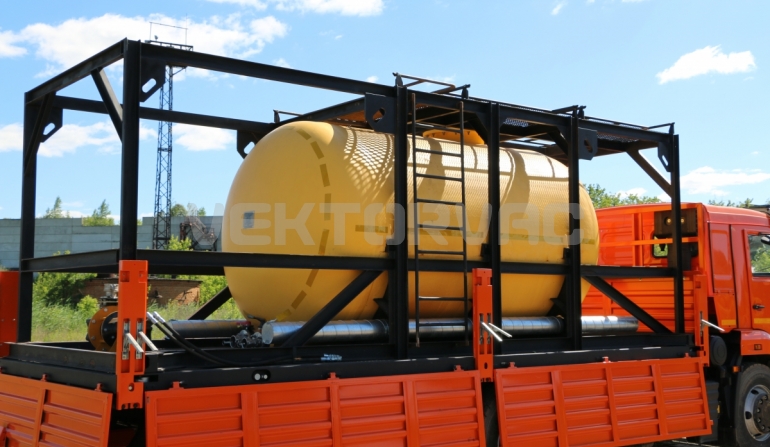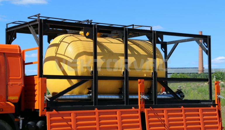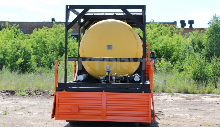 Цистерна установлена на стандартном бортовом авто. Замки — контейнерного типа. Шасси оснащено гидрофикацией для подключения насоса.
