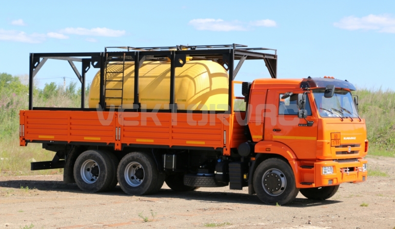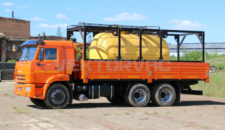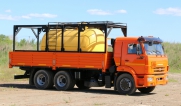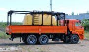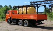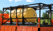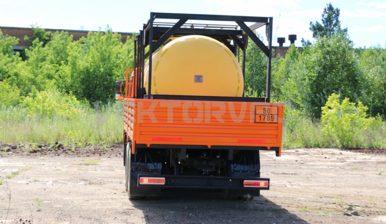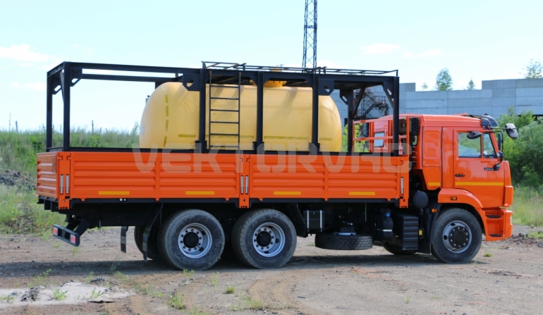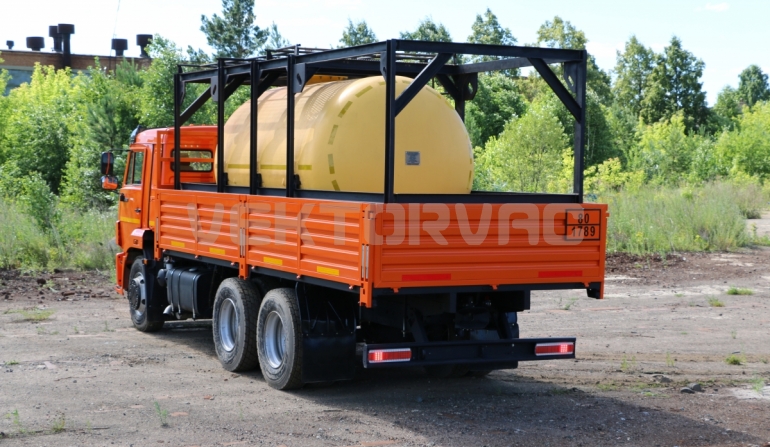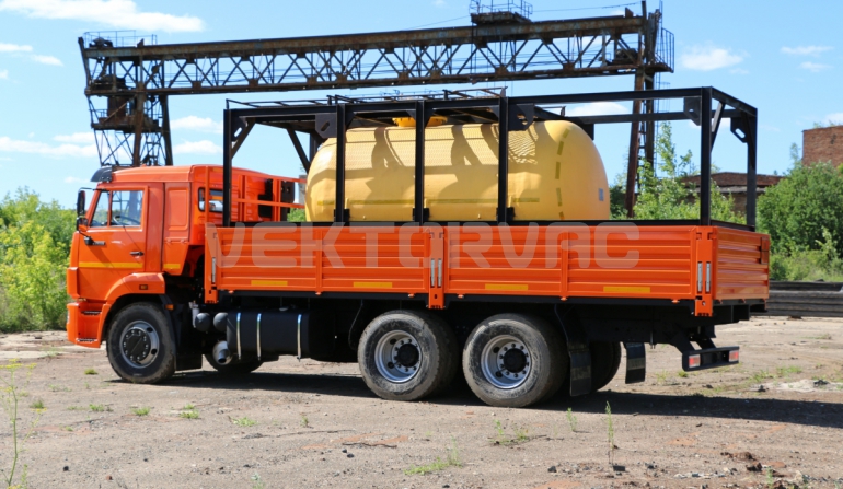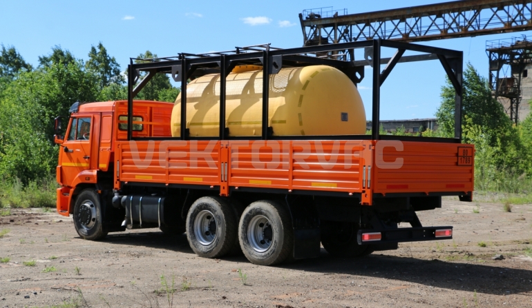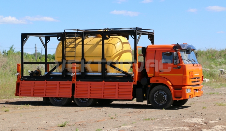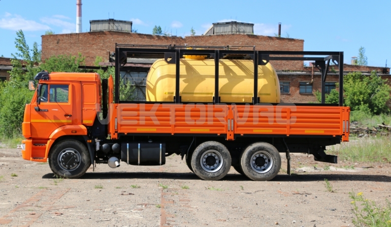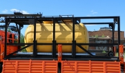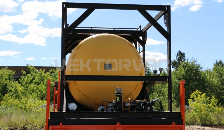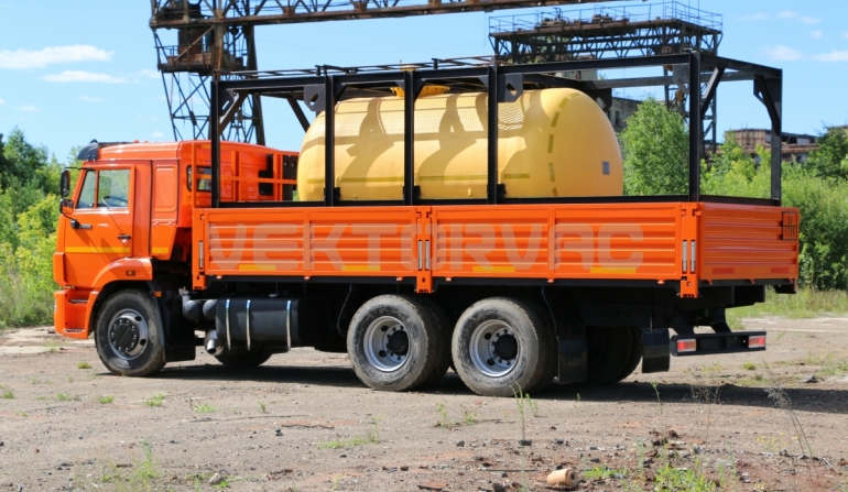Цистерна установлена на стандартном бортовом авто. Замки — контейнерного типа. Шасси оснащено гидрофикацией для подключения насоса.