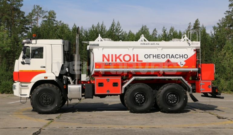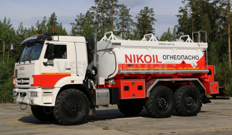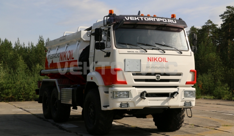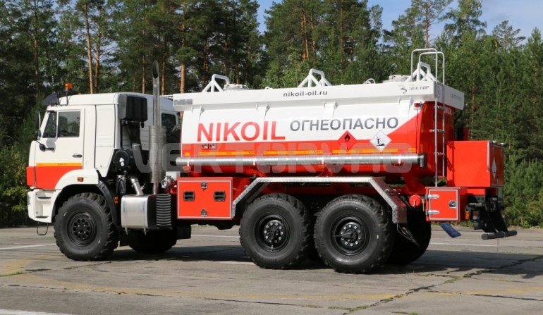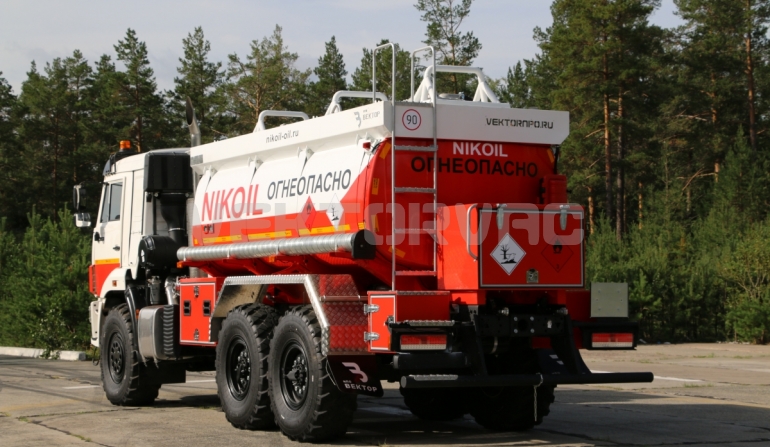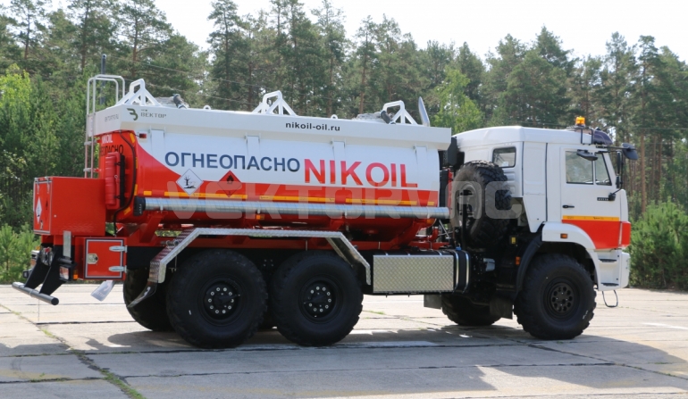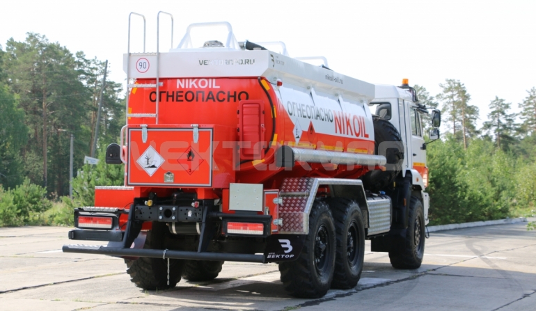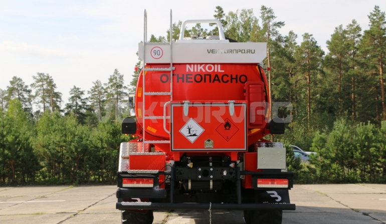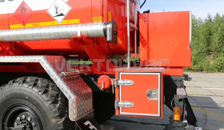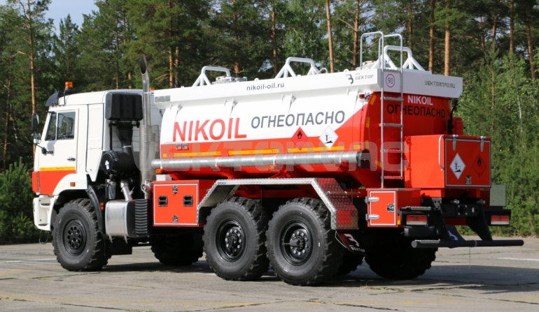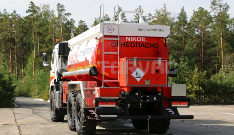 Топливозаправщик представляет собой цистерну, смонтированную на шасси «КАМАЗ».