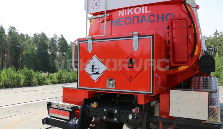 На автоцистерне предусмотрен знак предупреждения «Огнеопасно». Сзади есть цепь походного заземления. 200 мм цепи должно касаться дорожного полотна.