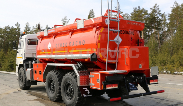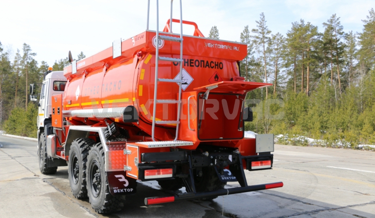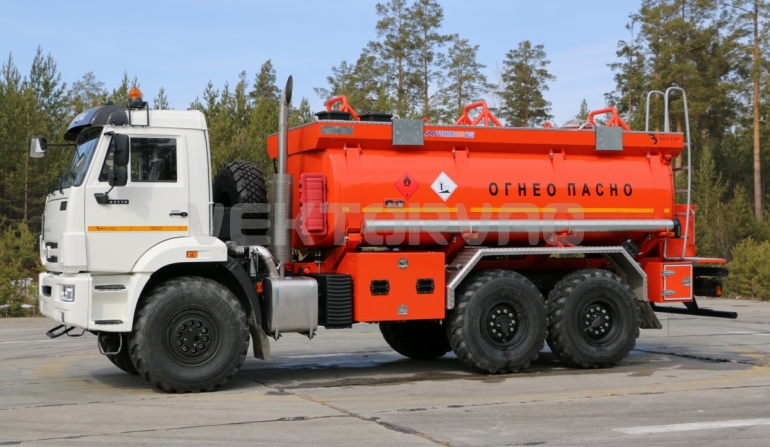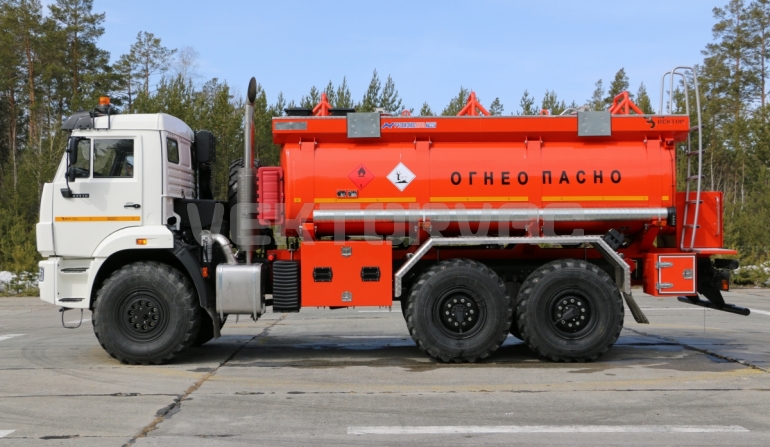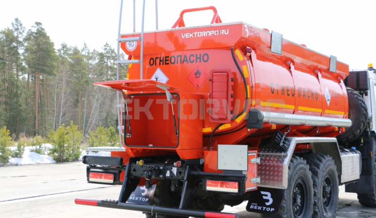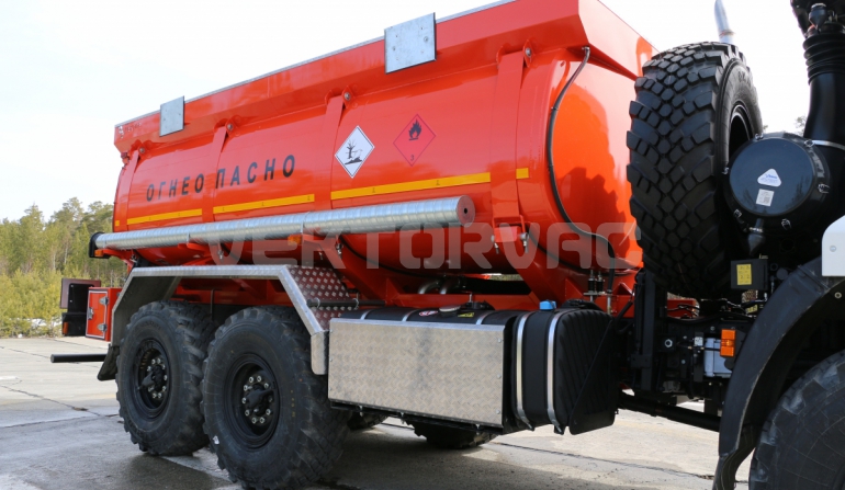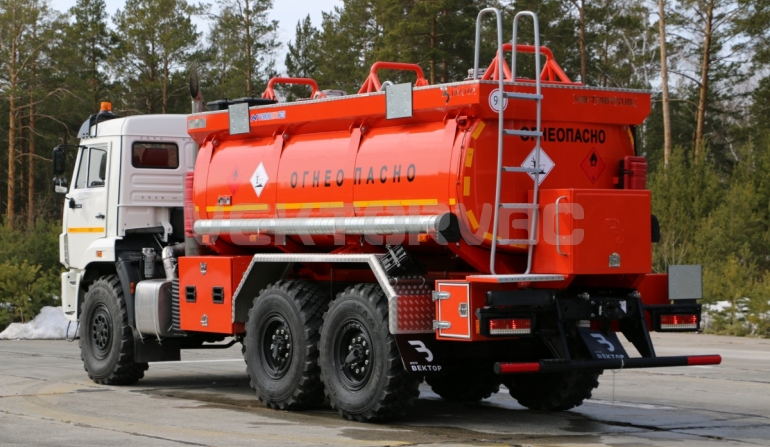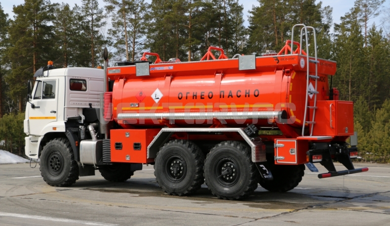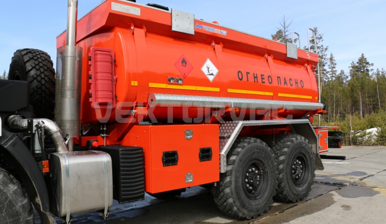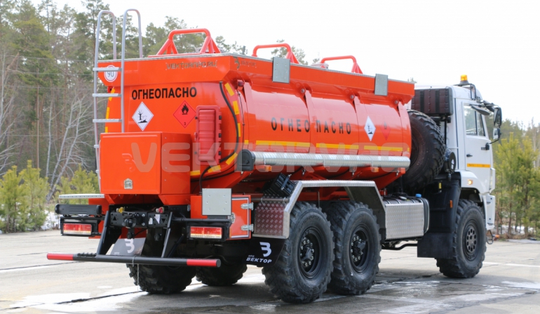 Топливозаправщик представляет собой цистерну, смонтированную на шасси «КАМАЗ».
