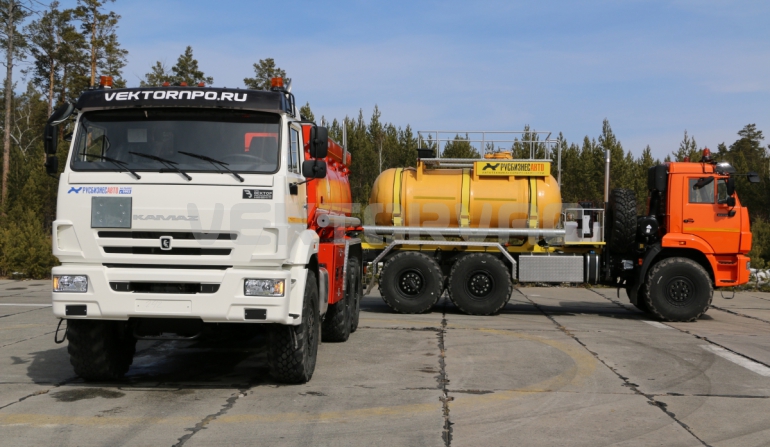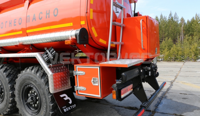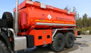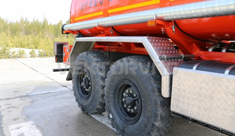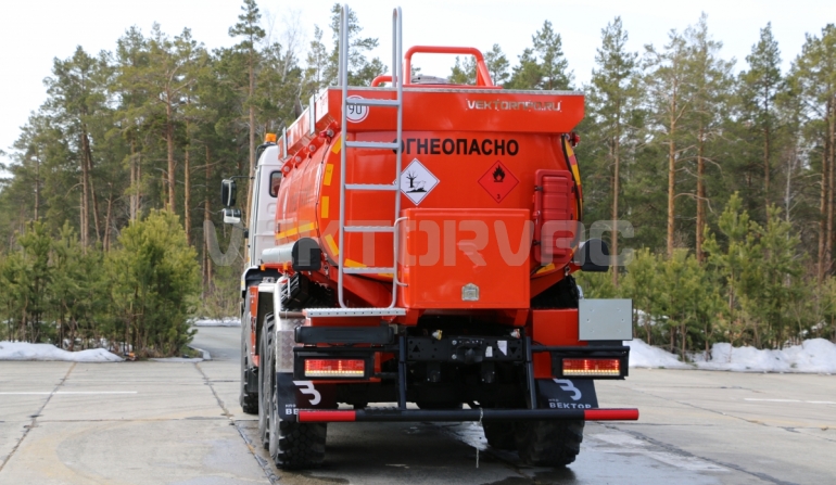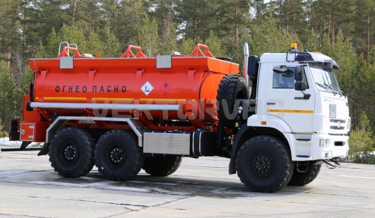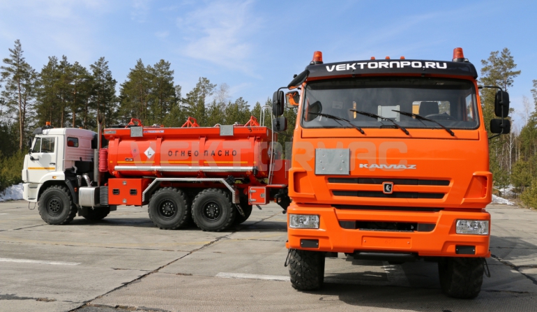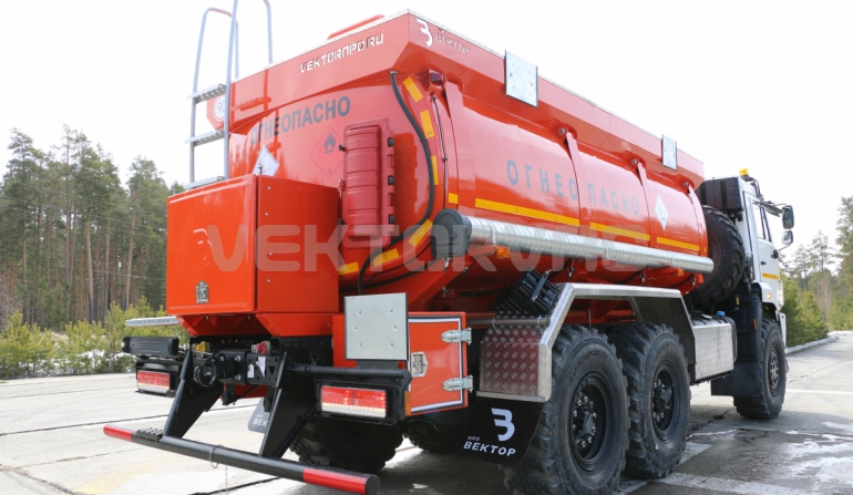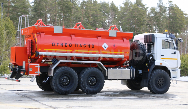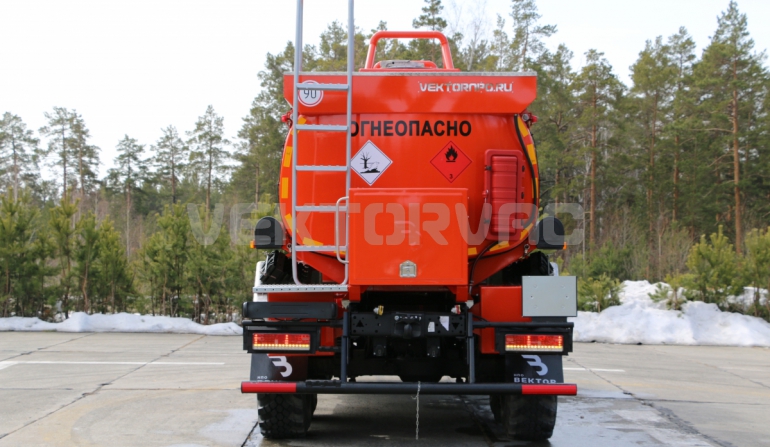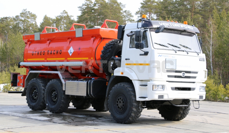 Топливозаправщик представляет собой цистерну, смонтированную на шасси «КАМАЗ».