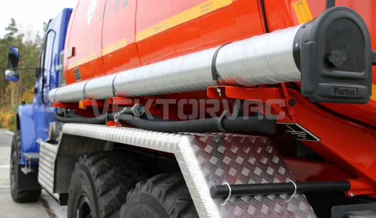 Топливозаправщик представляет собой цистерну, смонтированную на шасси «Урал NEXT».