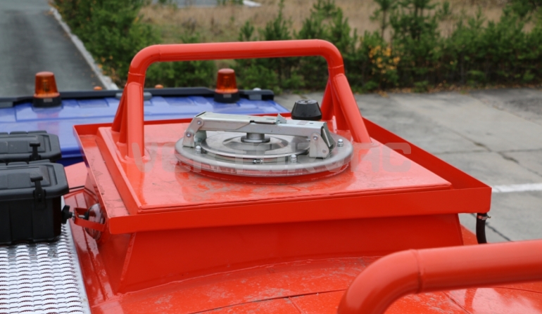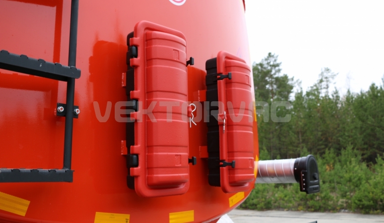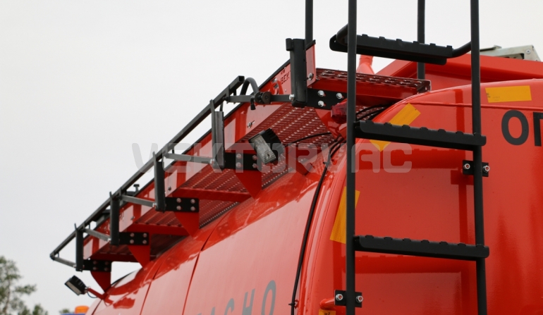 На цистерне предусмотрена площадка для обслуживания из просеченного оцинкованного листа с перилами и лестница с откидной секцией, расположенной сзади.