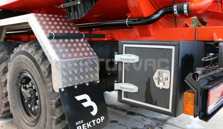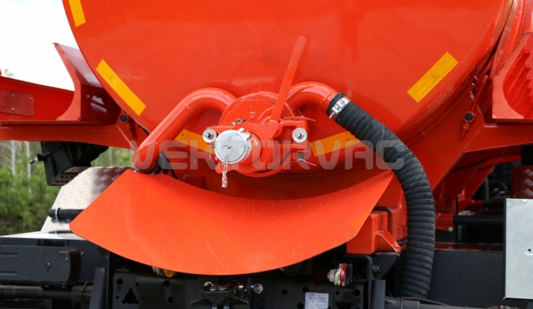 Внизу заднего днища цистерны вварен патрубок с фланцем, на который на откидных болтах крепится приемный лючок. Он состоит из крышки, на которой крепится рукоятка с диском, при повороте рукоятки происходит открытие либо закрытие люка. Герметичность соединений достигнута уплотнениями. К приемному люку с помощью накидной гайки присоединён рукав, который состоит из напорно-всасывающего рукава ДУ100 мм, накидной гайки для соединения с лючком, прокладки и наконечника.