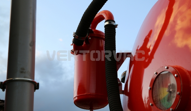 Компрессор назначен для создания вакуума в цистерне при заполнении и давления во время слива. Система вакуумной установки включает: вакуумный насос, маслоотделитель, влагоотделитель, систему трубопроводов с шаровыми кранами.