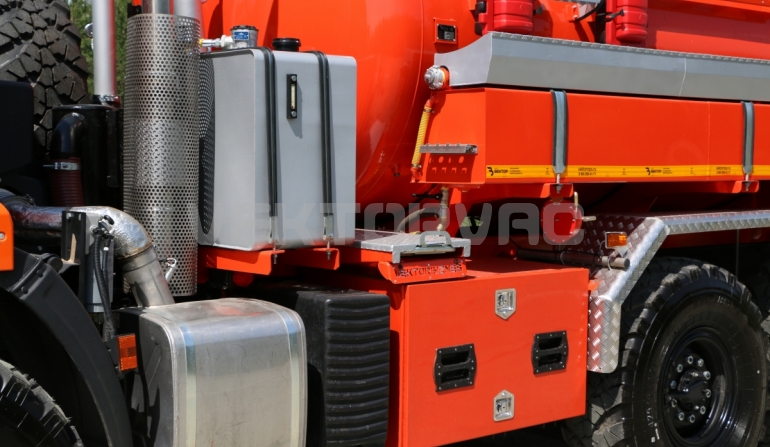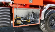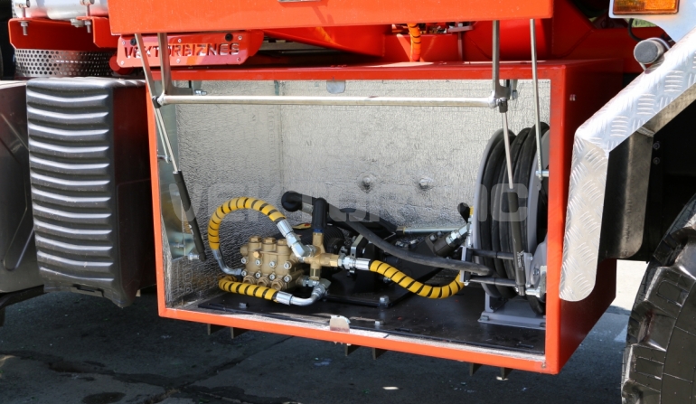 - Системой размыва плотных отложений грунта — (насос высокого давления GC 50/12 (UDOR, Италия) — давление 120 атм., расход воды до 50 л/мин, емкость для чистой воды из нержавеющей стали, рукав высокого давления длиной 15 м. на инерционной катушке, монитор-пистолет).