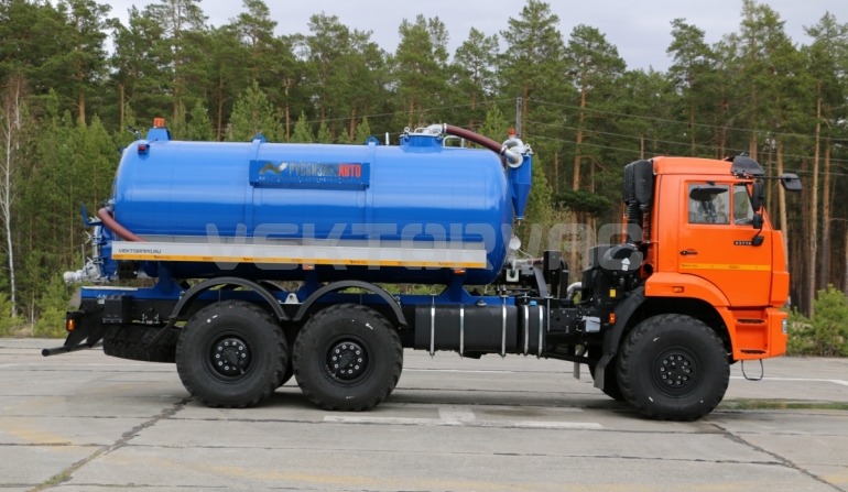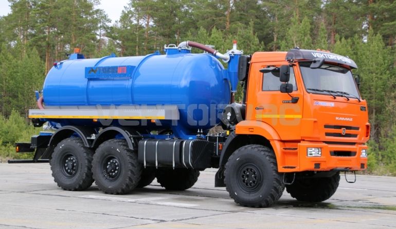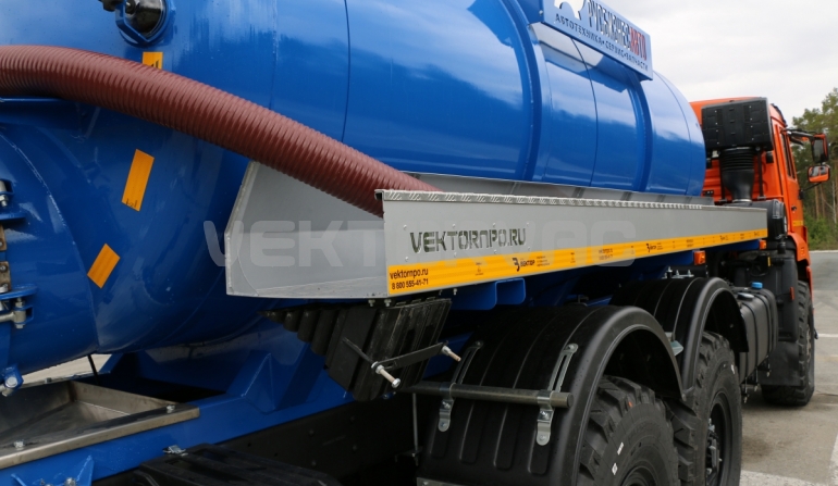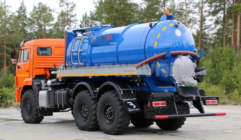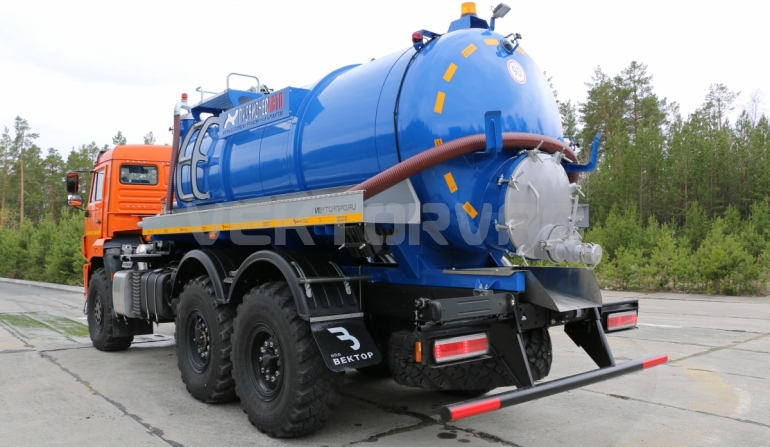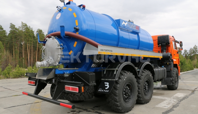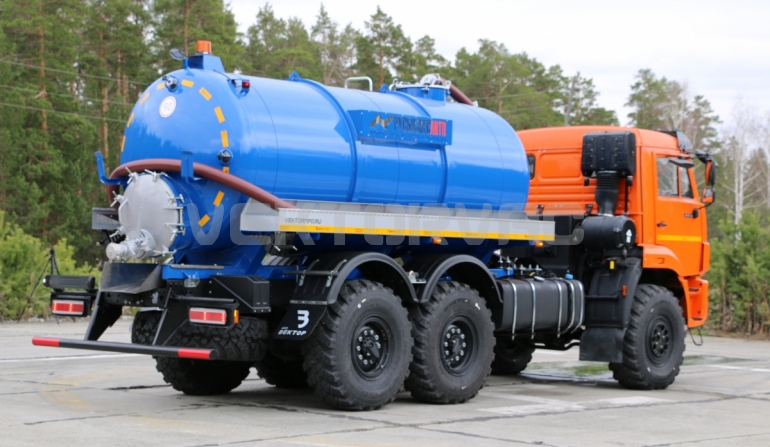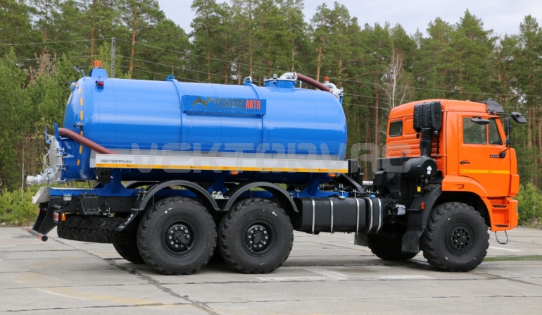 Машина вакуумная МВ-10 на автошасси КАМАЗ-43118 с размещенным на нем навесным спецоборудованием с открывающимся задним лючком ТЛ-740.