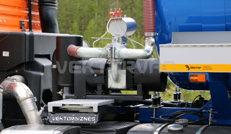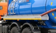 Автоцистерна оборудована напорно-всасывающим рукавом, который в транспортном положении находится в пенале.