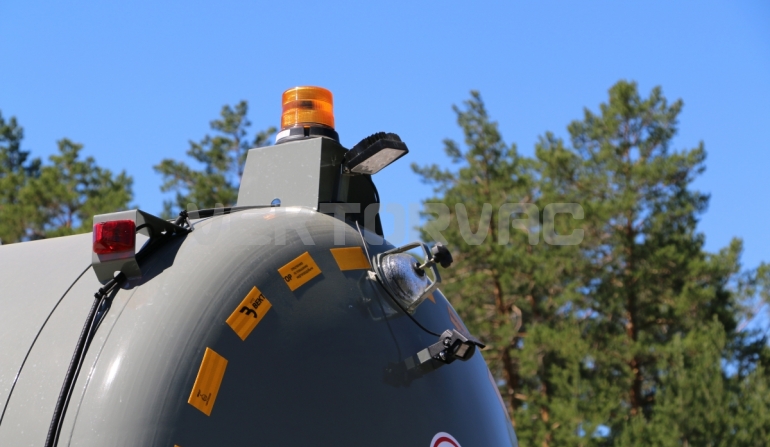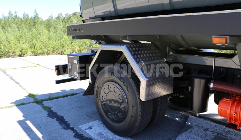 Автоцистерна оборудована напорно-всасывающим рукавом, который в транспортном положении находится в пенале.