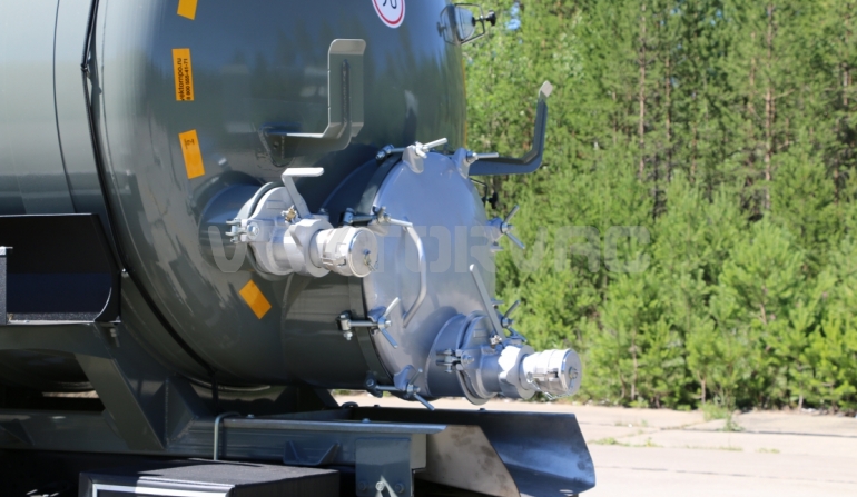 Сзади, на торце цистерны размещен приемный люк, который предназначен для наполнения и слива жидкости. Люк герметично закрывается крышкой, на которой закреплен кран и напорная головка с заглушкой.