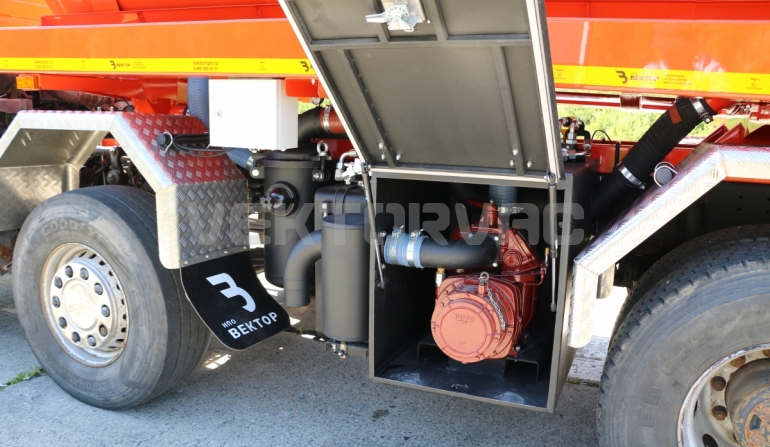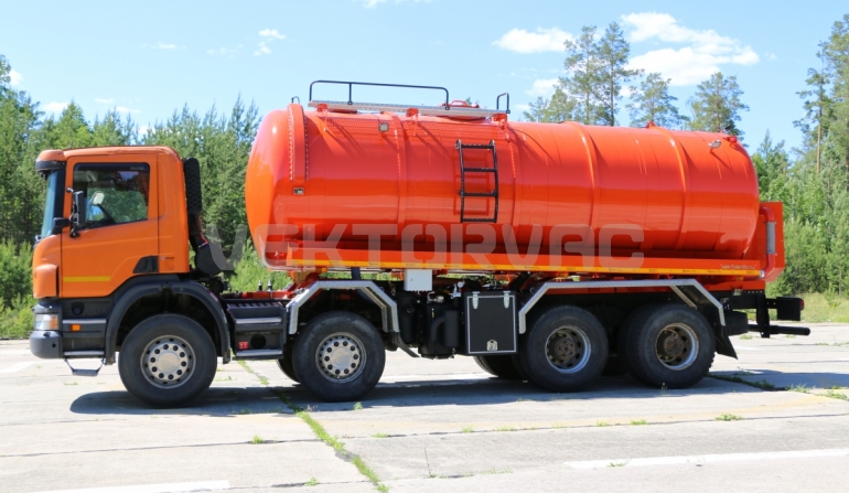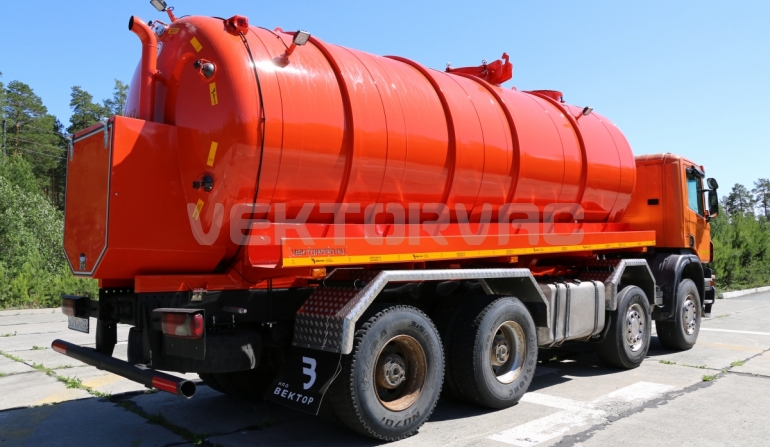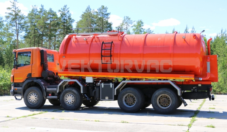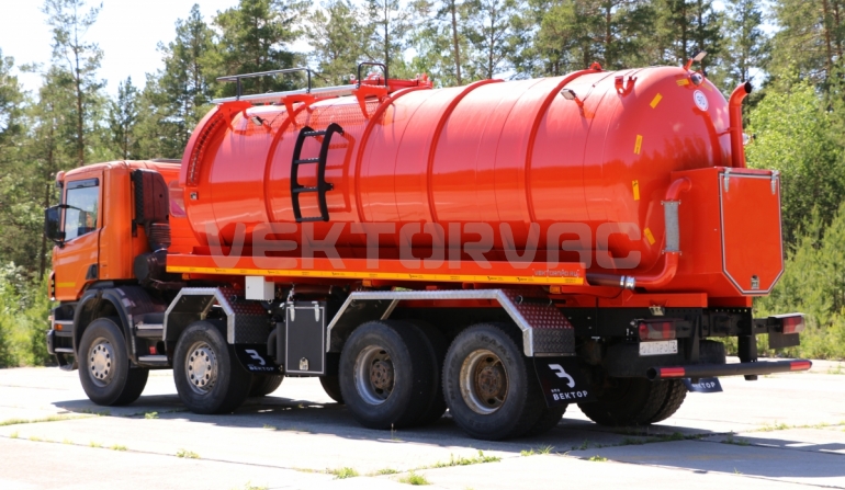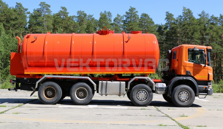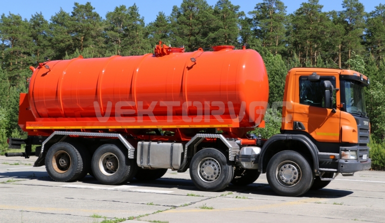 Машина вакуумная МВ-20 — автошасси Scania с размещенным на нем навесным спецоборудованием.