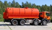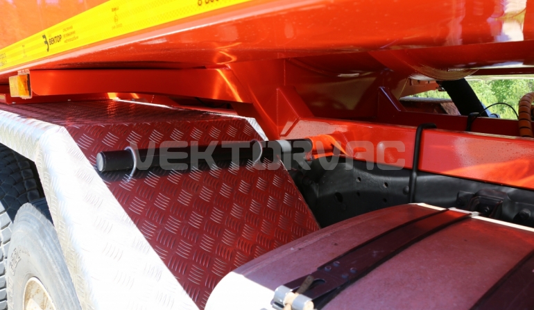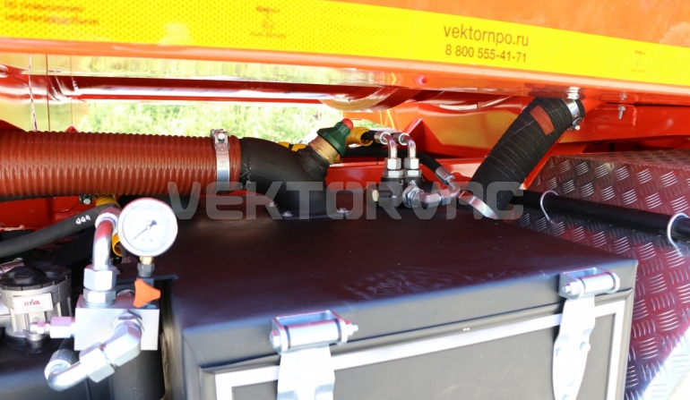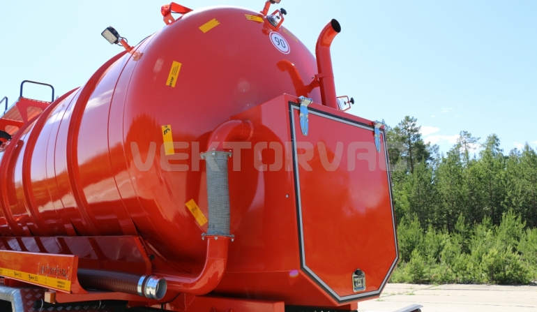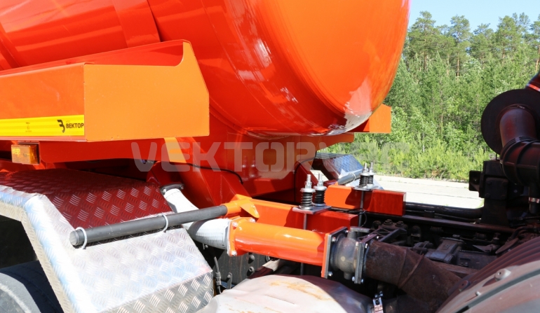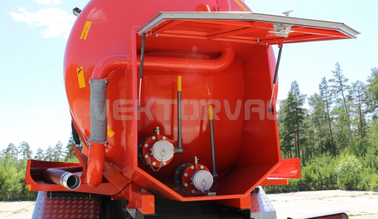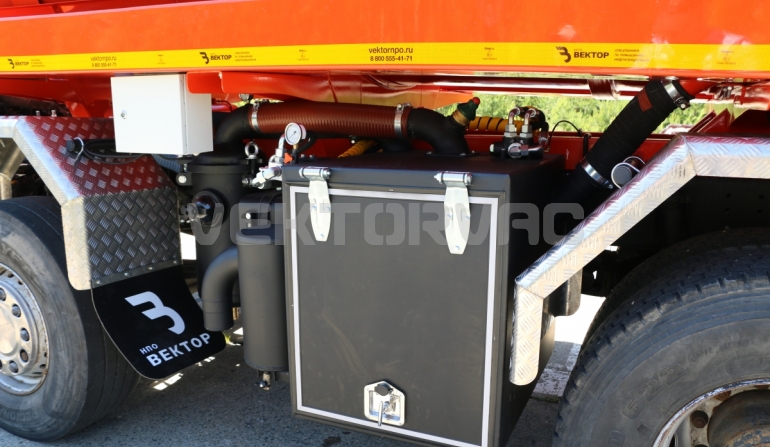 Автоцистерна оборудована напорно-всасывающим рукавом, который в транспортном положении находится в пенале.