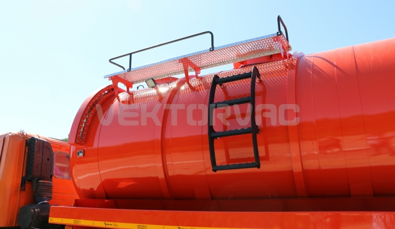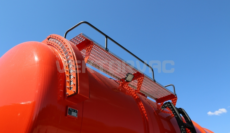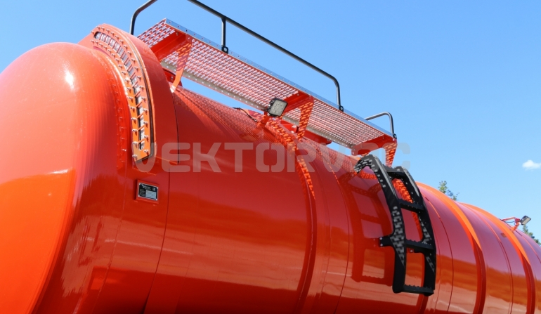 Для удобного обслуживания горловины цистерны оператором есть площадка обслуживания из перфорированного листа с противоскользящим эффектом и подъёмная лестница.