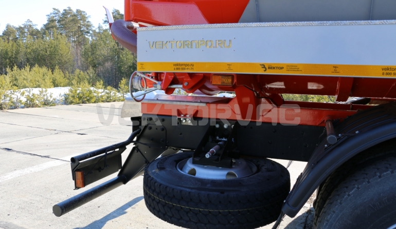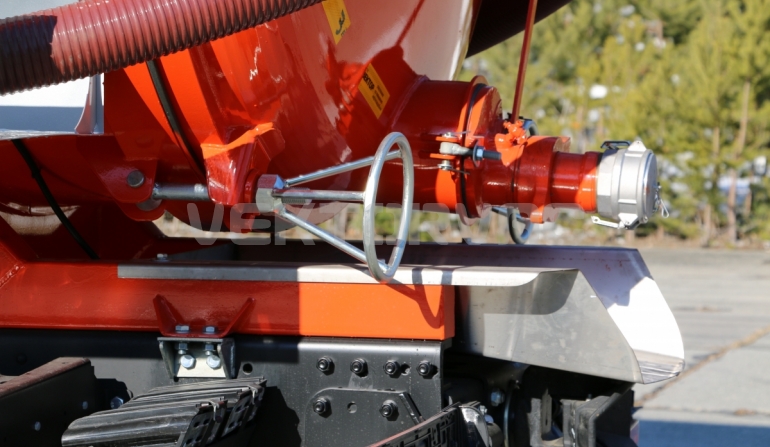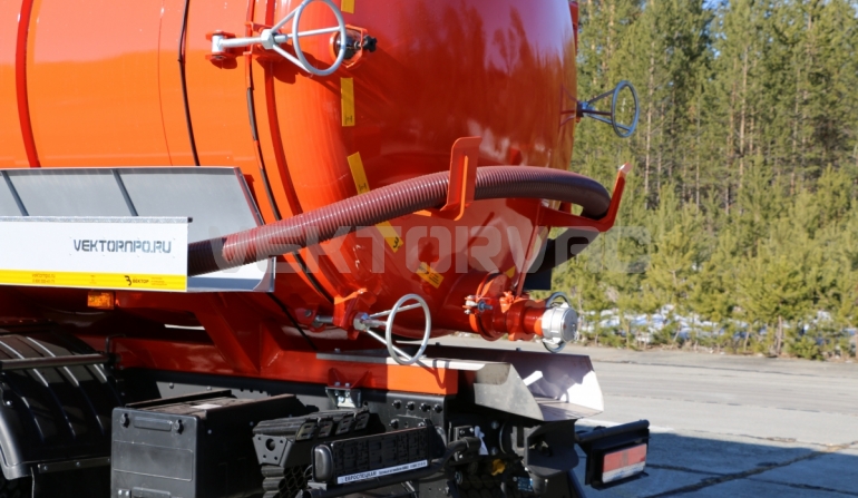 Автоцистерна оборудована напорно-всасывающим рукавом, который в транспортном положении находится в пенале.